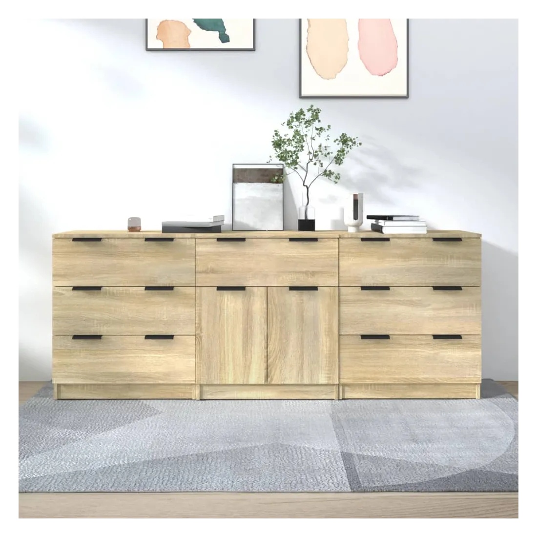 Dotés d'un charme minimaliste, ces buffets sont destinés à satisfaire vos différentes exigences et à compléter idéalement votre pièce. Matériau facile à nettoyer : fabriquées en bois d'ingénierie, les armoires latérales sont faciles à nettoyer. Le bois d'ingénierie est d'une qualité exceptionnelle avec une surface lisse et présente également résistance, stabilité et résistance à l'humidité.Grand espace de rangement : l'espace de rangement rend ces buffets faciles à organiser.Armoire multifonctionnelle : le dessus robuste est idéal pour afficher des objets décoratifs, des cadres photo ou des plantes en pot. Elles peuvent également être utilisées comme armoires de console, armoires latérales, etc. ATTENTION :Afin d'éviter le basculement, ces produits doivent être utilisés avec le dispositif de fixation murale fourni. Remarque :Chaque produit est livré avec un manuel de montage dans la boîte pour un montage facile.