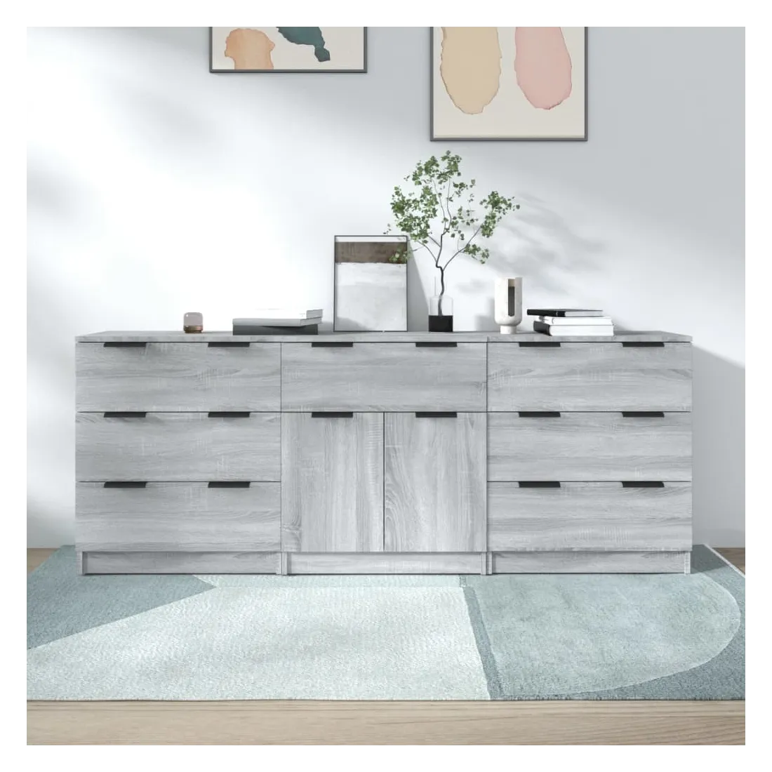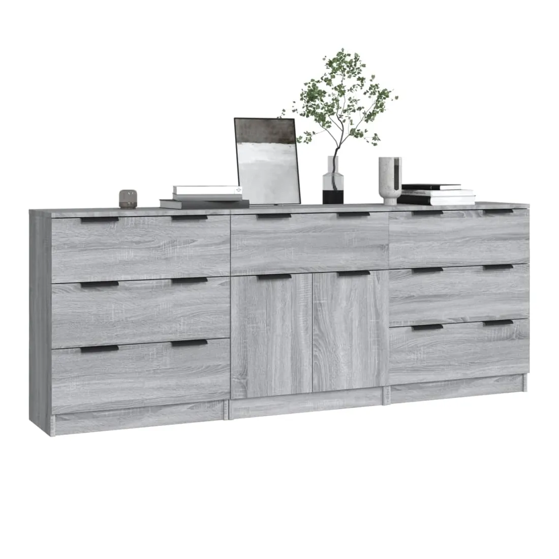Buffets 3 pcs Sonoma gris Bois d'ingénierie