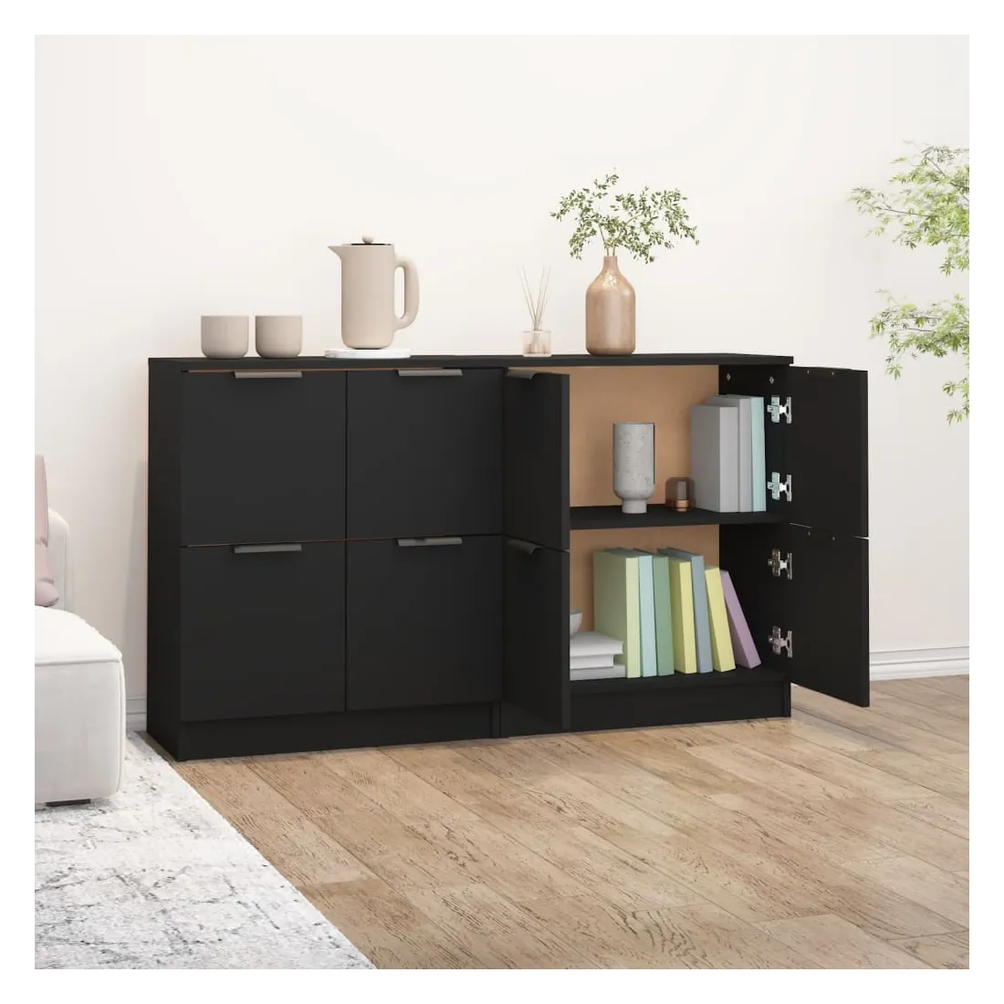 Buffets 2 pcs Noir 60x30x70 cm Bois d'ingénierie