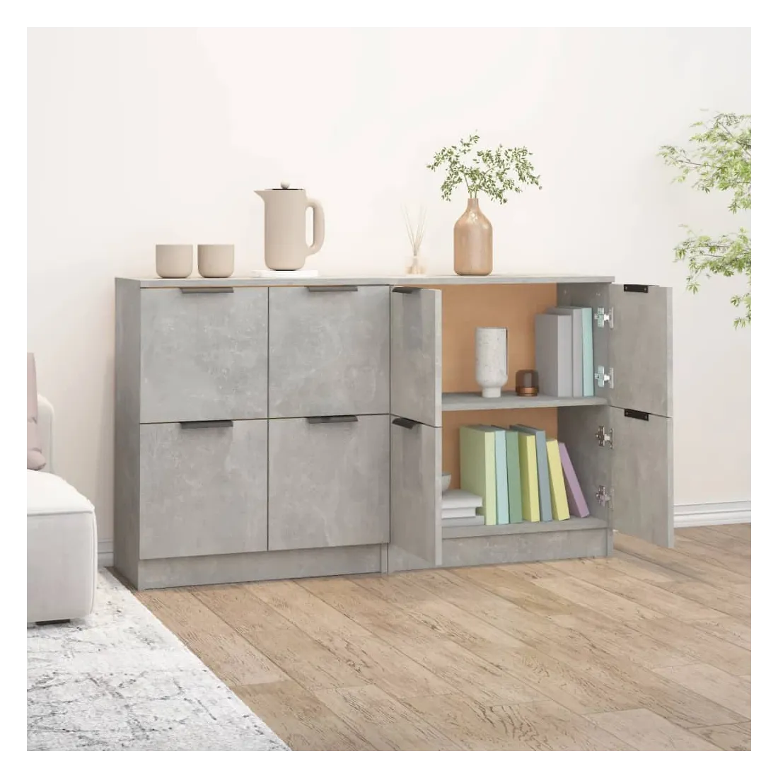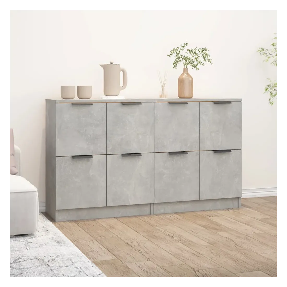 Dotés d'un charme minimaliste, ces buffets sont destinés à satisfaire vos différentes exigences et à compléter idéalement votre pièce. Matériau facile à nettoyer : fabriquées en bois d'ingénierie, les armoires latérales sont faciles à nettoyer. Le bois d'ingénierie est d'une qualité exceptionnelle avec une surface lisse et présente également résistance, stabilité et résistance à l'humidité. Grand espace de rangement : l'espace de rangement rend ces buffets faciles à organiser. Armoire multifonctionnelle : le dessus robuste est idéal pour afficher des objets décoratifs, des cadres photo ou des plantes en pot. Elles peuvent également être utilisées comme armoires de console, armoires latérales, etc. ATTENTION : Afin d'éviter le basculement, ces produits doivent être utilisés avec le disp