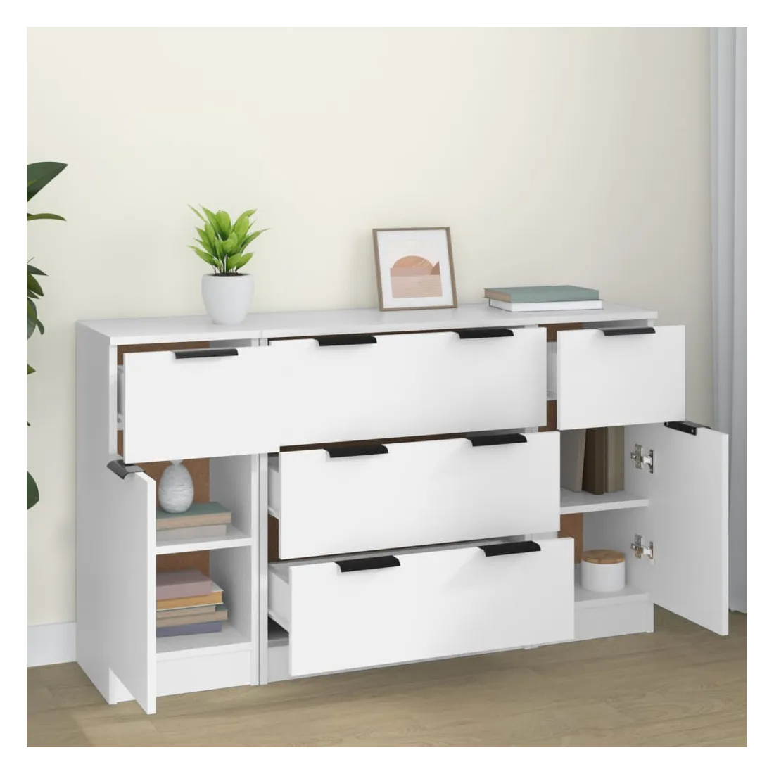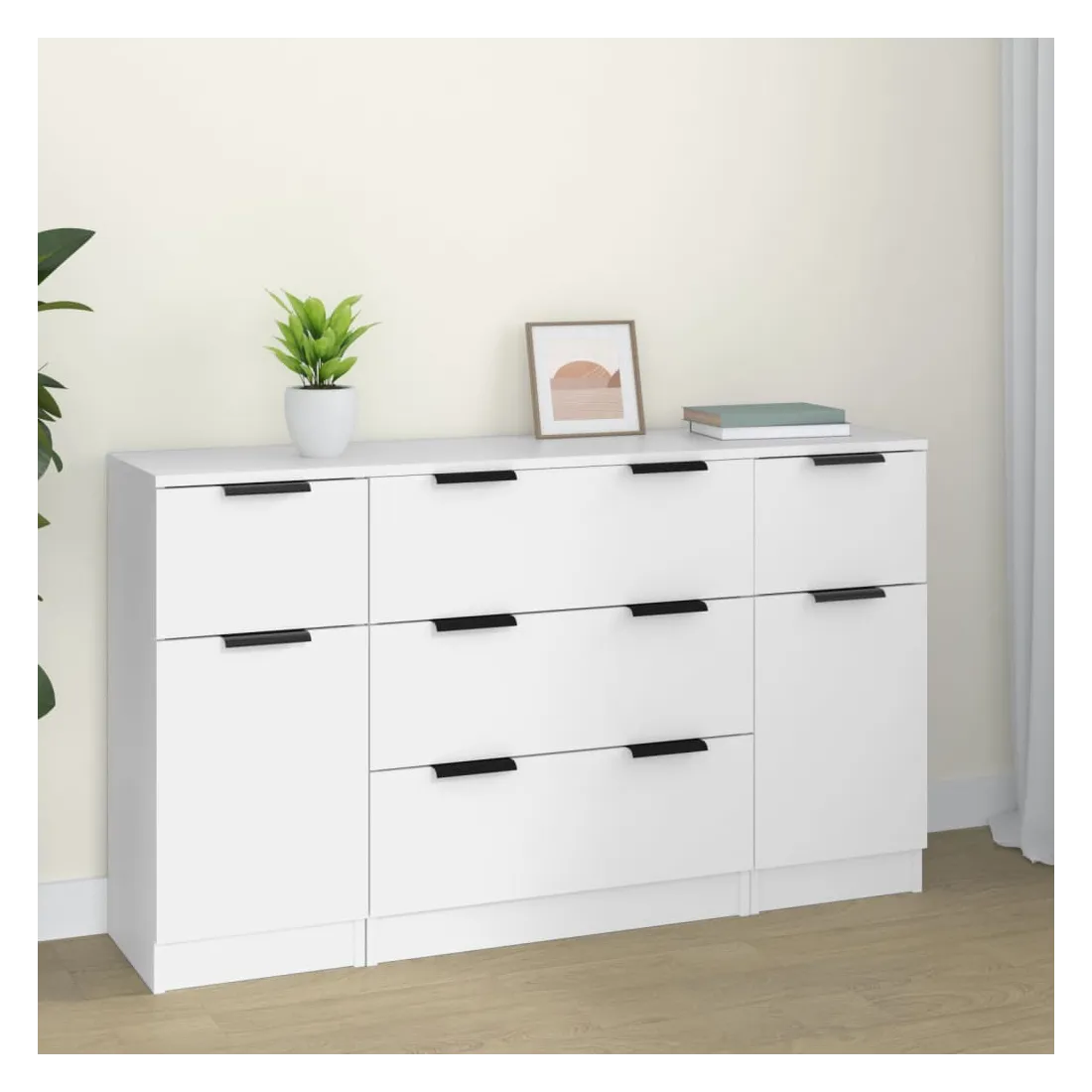 Dotés d'un charme minimaliste, ces buffets sont destinés à satisfaire vos différentes exigences et à compléter idéalement votre pièce. Matériau facile à nettoyer : fabriqués en bois d'ingénierie, les buffets sont faciles à nettoyer. Le bois d'ingénierie est d'une qualité exceptionnelle avec une surface lisse et présente également résistance, stabilité et résistance à l'humidité.Grand espace de rangement : les buffets offrent un grand espace de rangement, ce qui permet de bien organiser les choses.Design tendance : les buffets chics présentent des lignes épurées et un look minimaliste qui ajoutent une touche moderne à votre décor existant. Remarque :Chaque produit est livré avec un manuel de montage dans la boîte pour un montage facile. Attention :Afin d'éviter le basculement, ces produits doivent être utilisés avec le dispositif de fixation murale fourni.