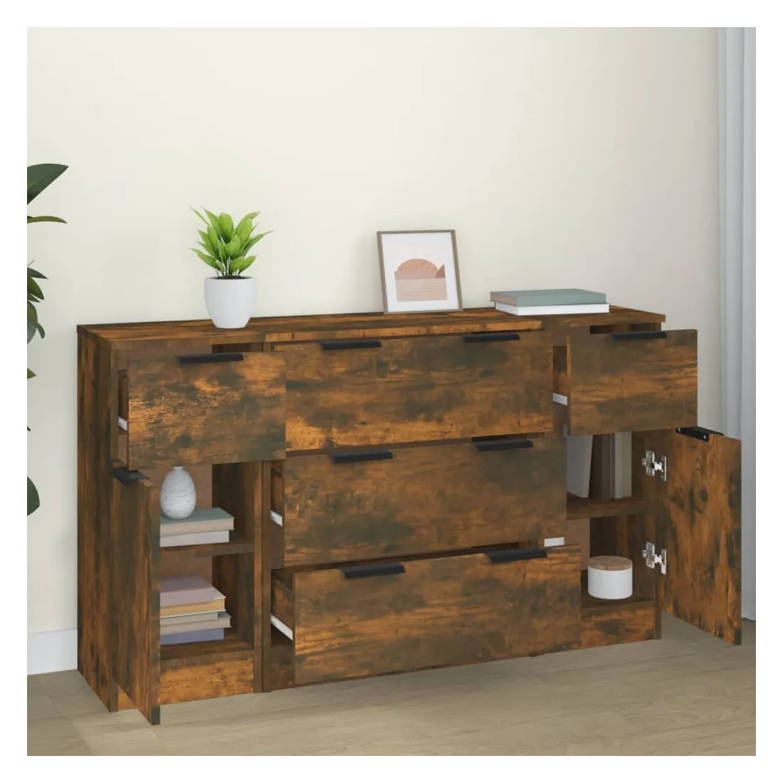 Dotés d'un charme minimaliste, ces buffets sont destinés à satisfaire vos différentes exigences et à compléter idéalement votre pièce. Matériau facile à nettoyer : fabriqués en bois d'ingénierie, les buffets sont faciles à nettoyer. Le bois d'ingénierie est d'une qualité exceptionnelle avec une surface lisse et présente également résistance, stabilité et résistance à l'humidité.Grand espace de rangement : les buffets offrent un grand espace de rangement, ce qui permet de bien organiser les choses.Design tendance : les buffets chics présentent des lignes épurées et un look minimaliste qui ajoutent une touche moderne à votre décor existant. Remarque :Chaque produit est livré avec un manuel de montage dans la boîte pour un montage facile. Attention :Afin d'éviter le basculement, ces produits doivent être utilisés avec le dispositif de fixation murale fourni.
