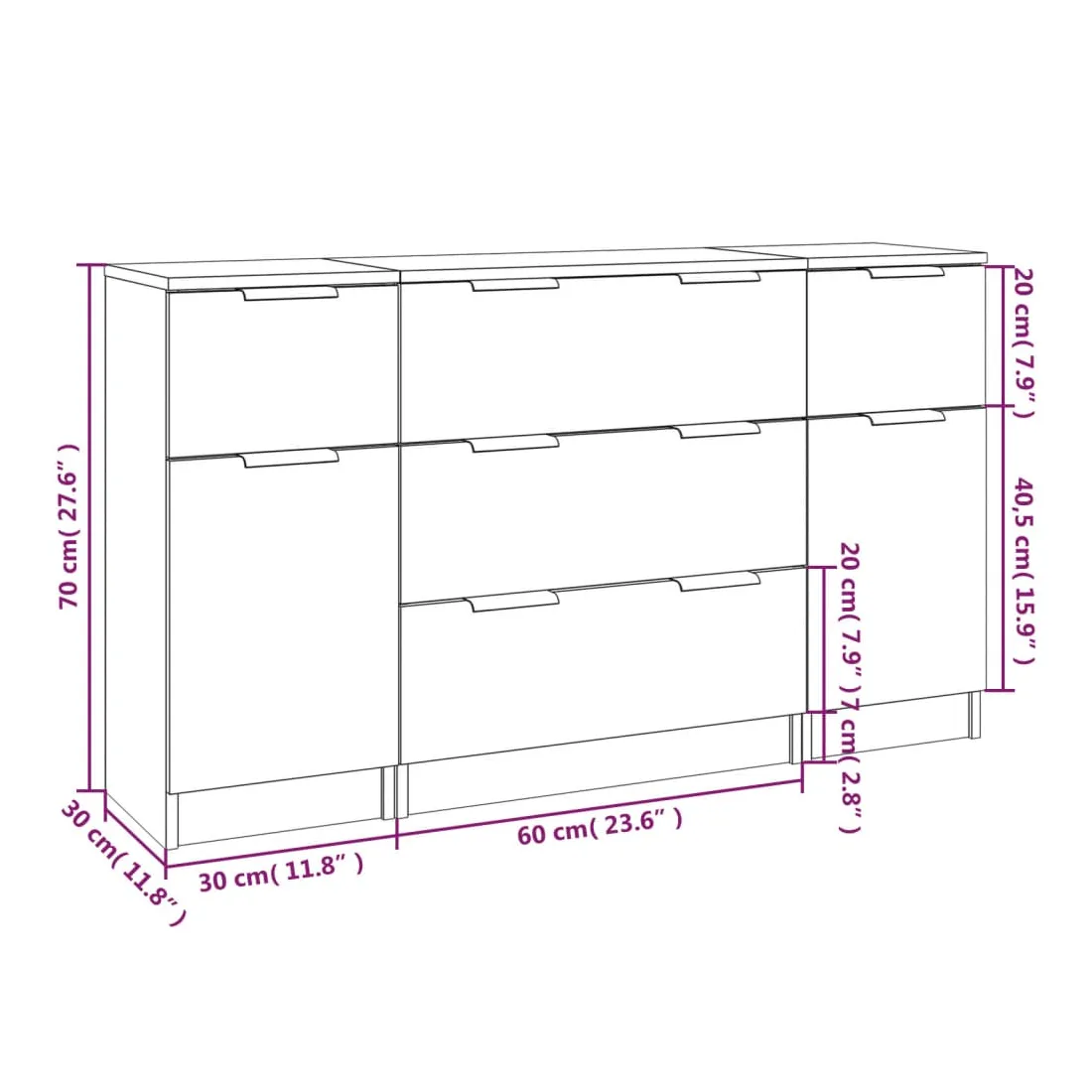 - Dimensions (buffet avec 3 tiroirs) : 60 x 30 x 70 cm (l x P x H)