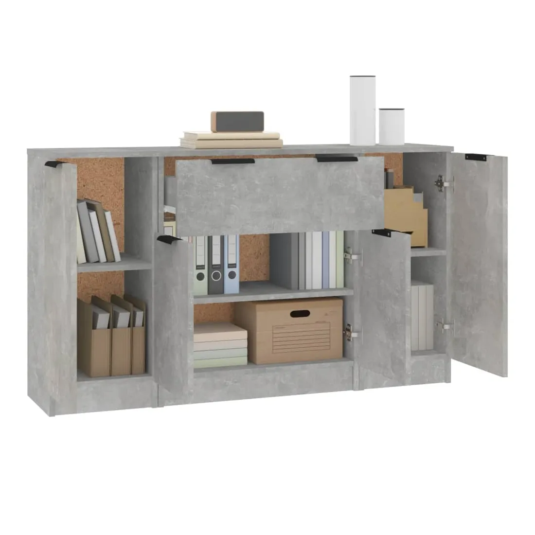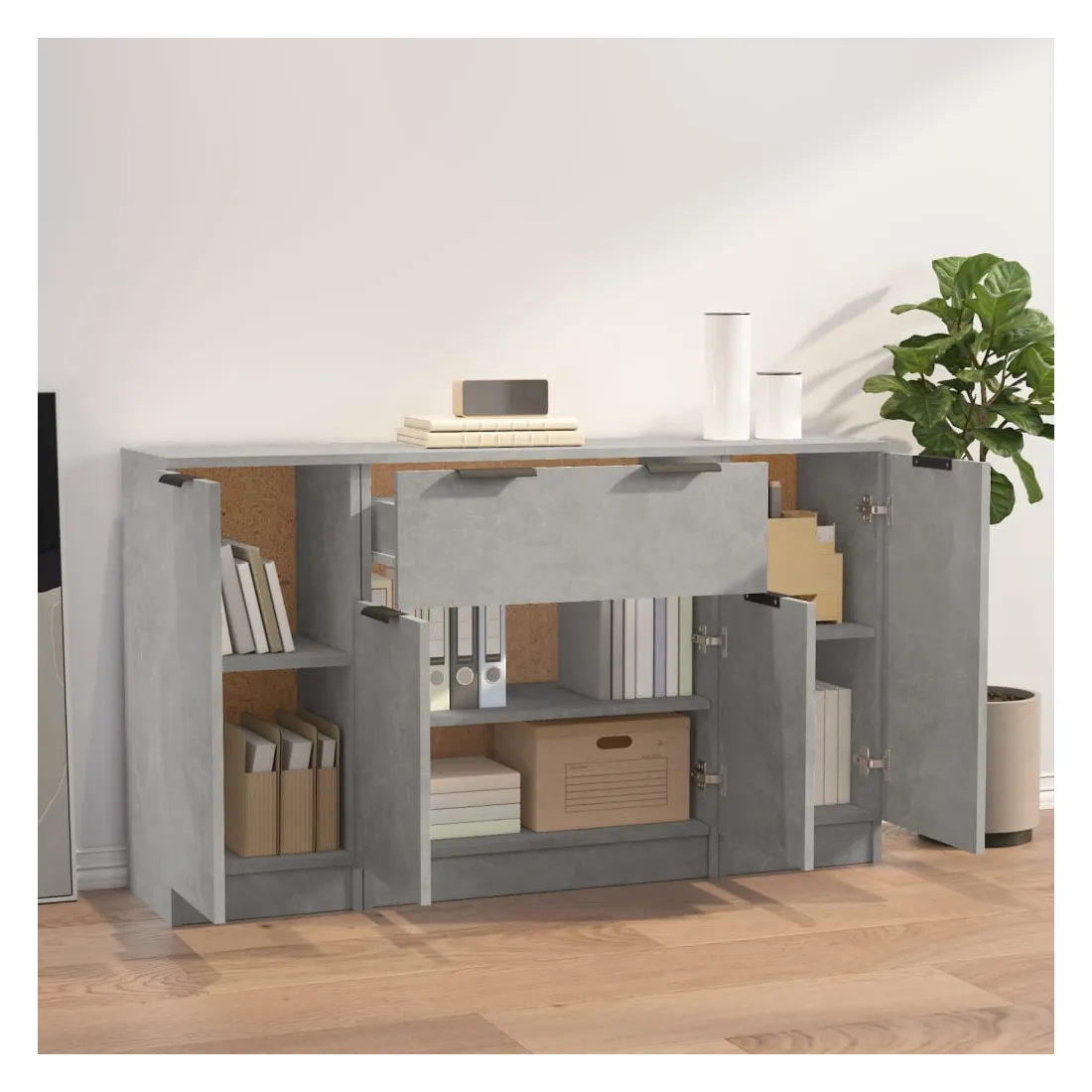 Dotés d'un charme minimaliste, ces buffets sont destinés à satisfaire vos différentes exigences et à compléter idéalement votre pièce. Matériau facile à nettoyer : fabriqués en bois d'ingénierie, les buffets sont faciles à nettoyer. Le bois d'ingénierie est d'une qualité exceptionnelle avec une surface lisse et présente également résistance, stabilité et résistance à l'humidité.Grand espace de rangement : avec 6 compartiments et 1 tiroir, les armoires offrent un grand espace de rangement pour garder vos livres, appareils multimédia et autres articles bien organisés et à portée de main.Design tendance : les buffets chics présentent des lignes épurées et un look minimaliste qui ajoutent une touche moderne à votre décor existant. Remarque :Chaque produit est livré avec un manuel de montage dans la boîte pour un montage facile. Attention :Afin d'éviter le basculement, ces produits doivent être utilisés avec le dispositif de fixation murale fourni.
