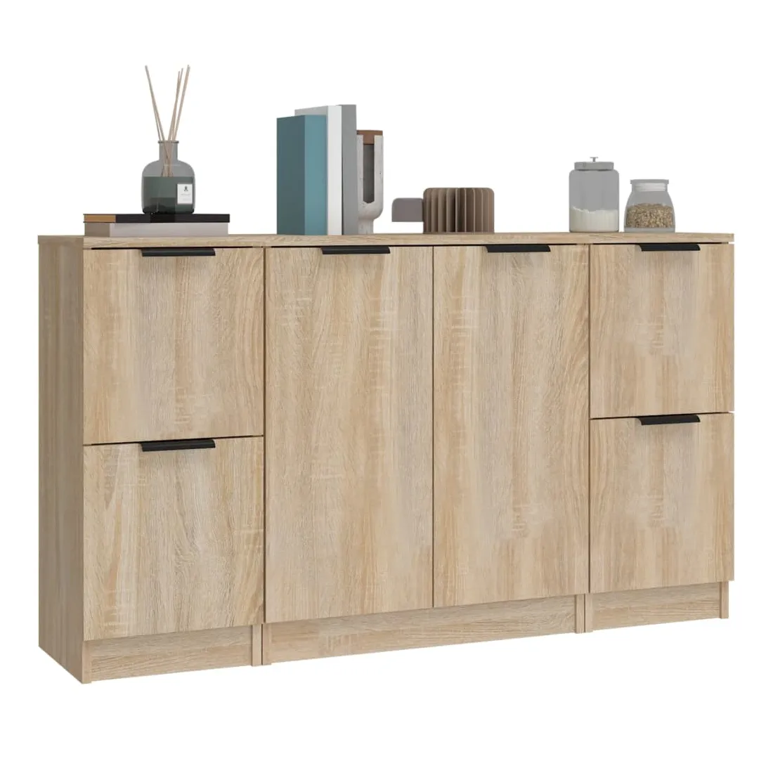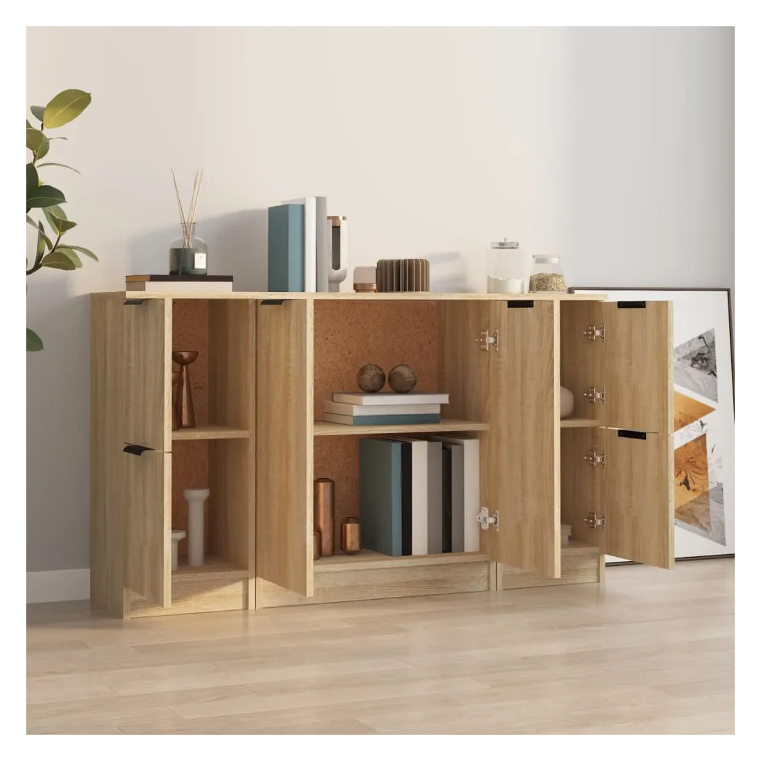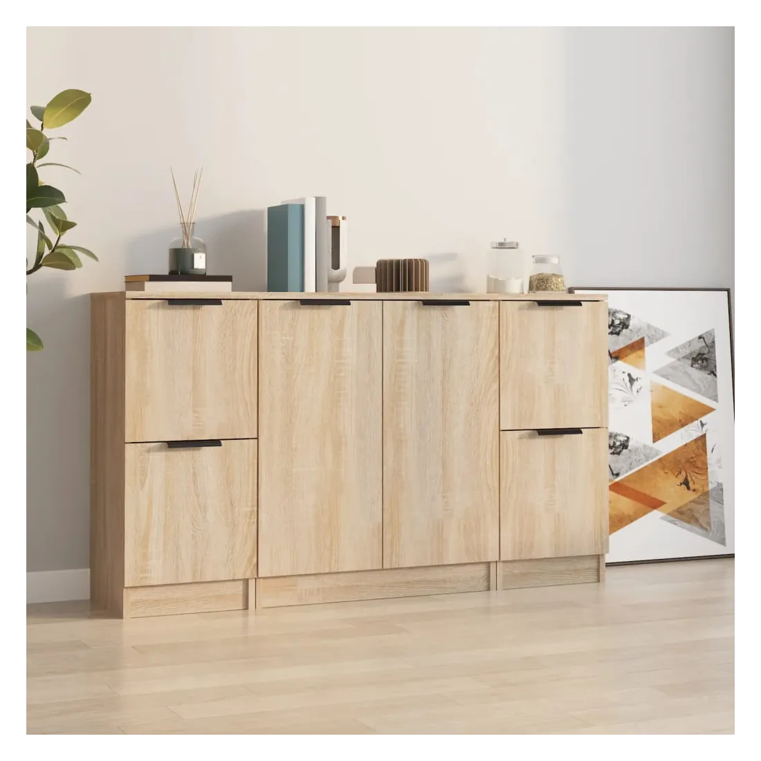 Dotés d'un charme minimaliste, ces buffets sont destinés à satisfaire vos différentes exigences et à compléter idéalement votre pièce. Matériau facile à nettoyer : fabriquées en bois d'ingénierie, les armoires latérales sont faciles à nettoyer. Le bois d'ingénierie est d'une qualité exceptionnelle avec une surface lisse et présente également résistance, stabilité et résistance à l'humidité.Grand espace de rangement : l'espace de rangement rend ces buffets faciles à organiser.Armoire multifonctionnelle : le dessus robuste est idéal pour afficher des objets décoratifs, des cadres photo ou des plantes en pot. Elles peuvent également être utilisées comme armoires de console, armoires latérales, etc. Remarque :Chaque produit est livré avec un manuel de montage dans la boîte pour un montage facile. Attention :Afin d'éviter le basculement, ces produits doivent être utilisés avec le dispositif de fixation murale fourni.
