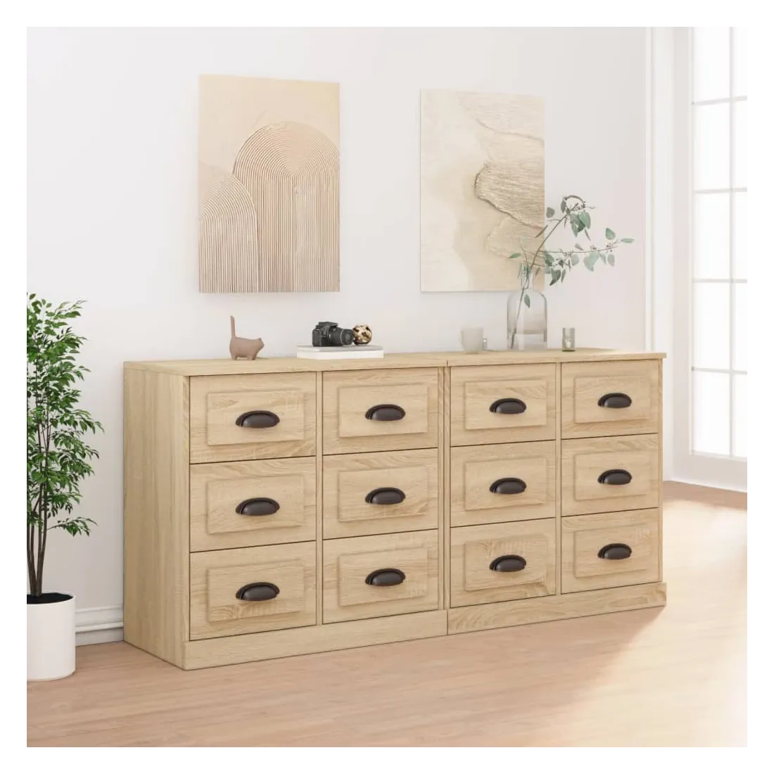 Ces buffets classiques, au look intemporel, sont conçus pour être un excellent supplément à votre maison. Matériau durable : le bois d'ingénierie est d'une qualité exceptionnelle avec une surface lisse et présente également résistance, stabilité et résistance à l'humidité.Grand espace de rangement : l'armoire offre un grand espace de rangement pour garder vos différents articles essentiels quotidiens bien organisés et facilement accessibles.Fonction d'affichage : vous pouvez également placer vos photos, décorations ou fleurs préférées sur l'armoire de rangement pour enrichir votre vie. Attention :Pour éviter qu'il ne soit renversé, ce produit doit être utilisé avec le dispositif de fixation au mur fourni