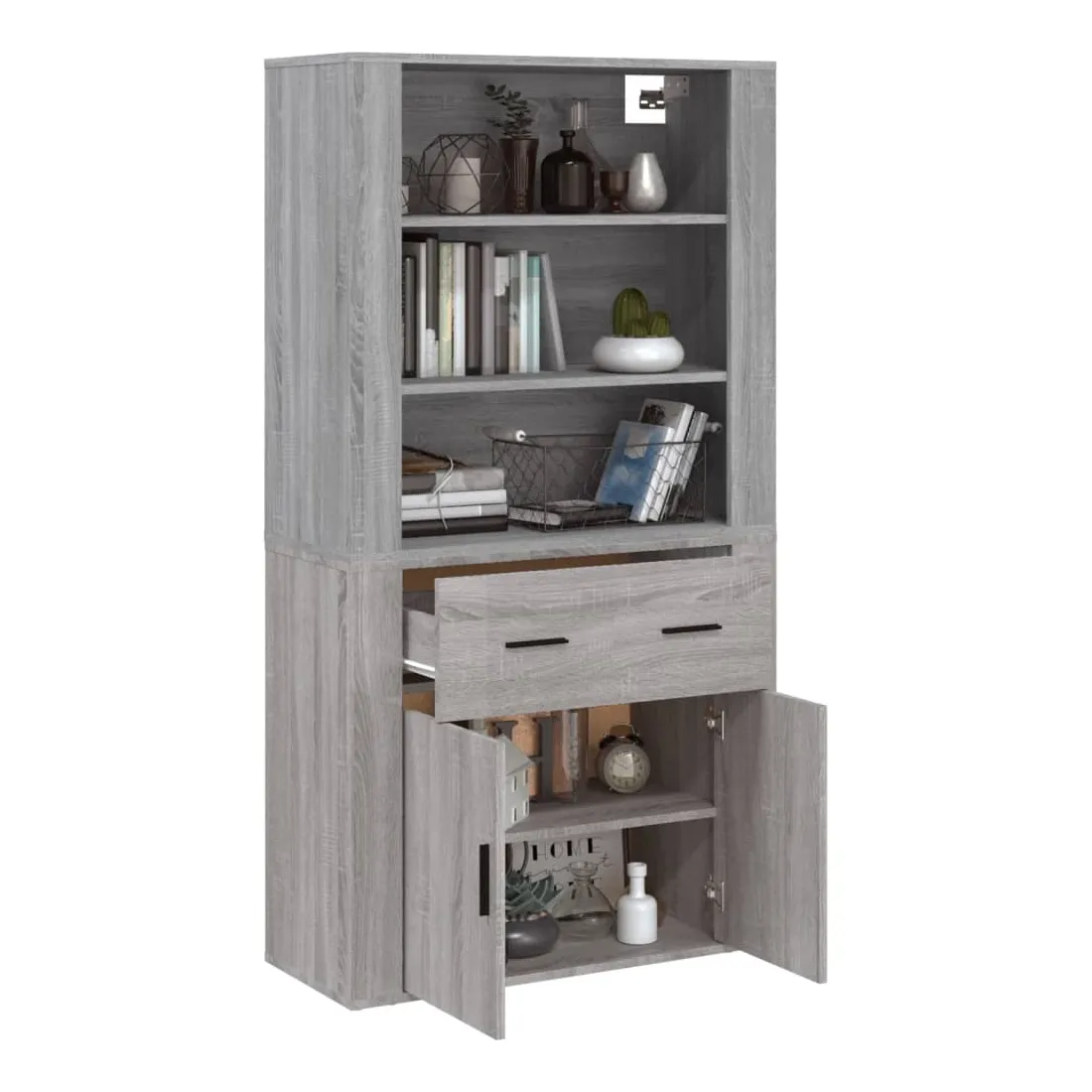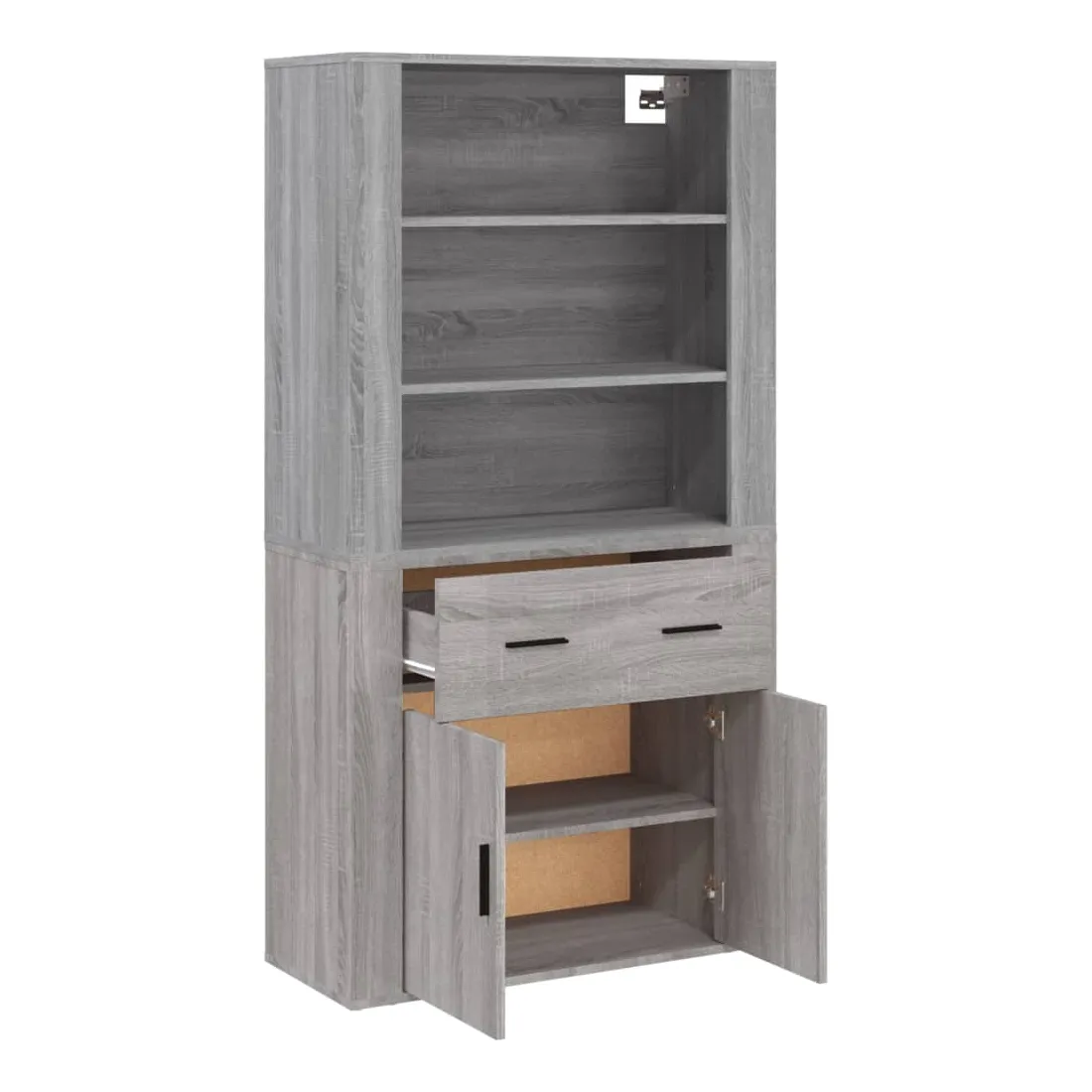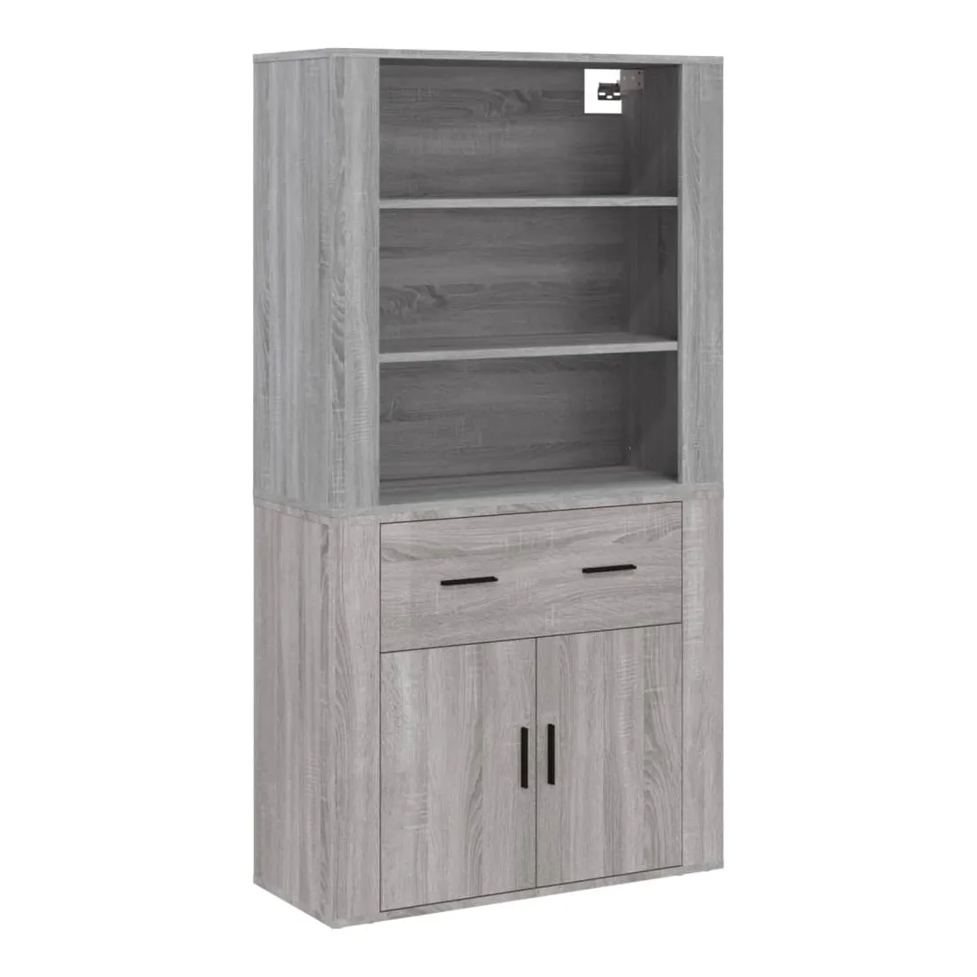 Cherchez-vous un buffet haut de gamme stylé ? Ce buffet haut ajoute un charme unique à votre intérieur existant ! Matériau durable : le bois d'ingénierie est d'une qualité exceptionnelle avec une surface lisse et présente également résistance, stabilité et résistance à l'humidité.Grand espace de rangement : le buffet offre un grand espace de rangement pour garder vos différents articles essentiels quotidiens bien organisés et facilement accessibles.Fonction murale : le meuble de rangement peut être fixé au mur sur le dessus du buffet pour créer un buffet haut, ce qui permet de gagner de l'espace au sol. Ainsi, vous pouvez maximiser votre espace de vie et garder la zone propre et bien rangée. Bon à savoir :Pour faciliter au maximum le montage, chaque produit est livré avec des instructions.Les vis et les chevilles pour l'intérieur du mur ne sont pas incluses. Nous vous conseillons de trouver et d'utiliser des vis et des chevilles adaptées spécifiquement à vos murs. Si vous n'êtes pas sûr, vous pouvez consulter un professionnel. Veuillez lire et suivre chaque étape des instructions. Attention :Pour éviter qu'il ne soit renversé, ce produit doit être utilisé avec le dispositif de fixation au mur fourni.