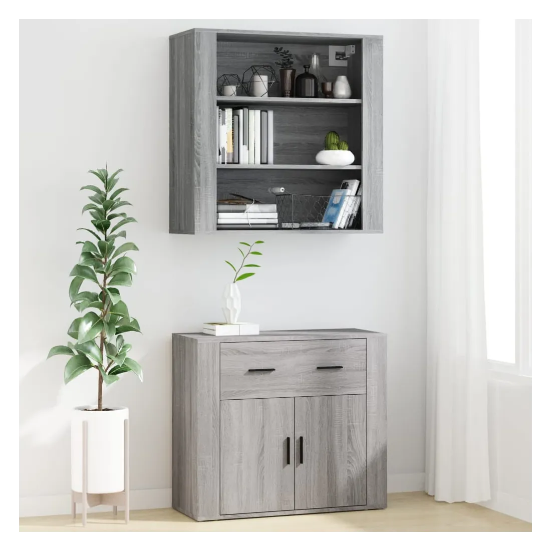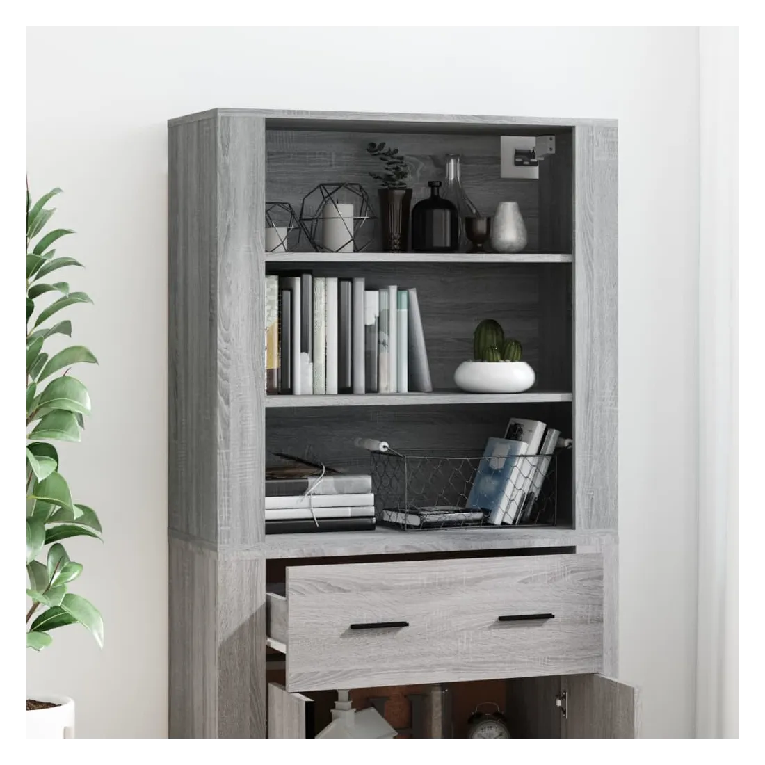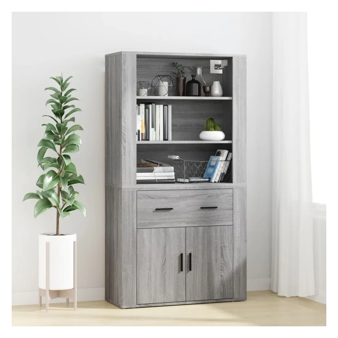 Cherchez-vous un buffet haut de gamme stylé ? Ce buffet haut ajoute un charme unique à votre intérieur existant ! Matériau durable : le bois d'ingénierie est d'une qualité exceptionnelle avec une surface lisse et présente également résistance, stabilité et résistance à l'humidité.Grand espace de rangement : le buffet offre un grand espace de rangement pour garder vos différents articles essentiels quotidiens bien organisés et facilement accessibles.Fonction murale : le meuble de rangement peut être fixé au mur sur le dessus du buffet pour créer un buffet haut, ce qui permet de gagner de l'espace au sol. Ainsi, vous pouvez maximiser votre espace de vie et garder la zone propre et bien rangée. Bon à savoir :Pour faciliter au maximum le montage, chaque produit est livré avec des instructions.Les vis et les chevilles pour l'intérieur du mur ne sont pas incluses. Nous vous conseillons de trouver et d'utiliser des vis et des chevilles adaptées spécifiquement à vos murs. Si vous n'êtes pas sûr, vous pouvez consulter un professionnel. Veuillez lire et suivre chaque étape des instructions. Attention :Pour éviter qu'il ne soit renversé, ce produit doit être utilisé avec le dispositif de fixation au mur fourni.