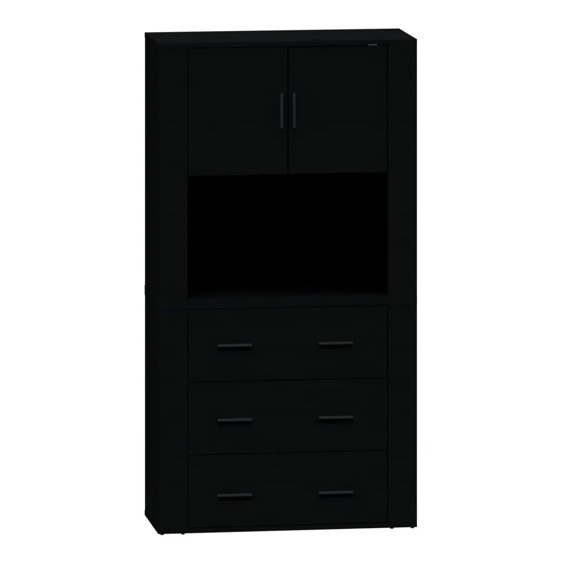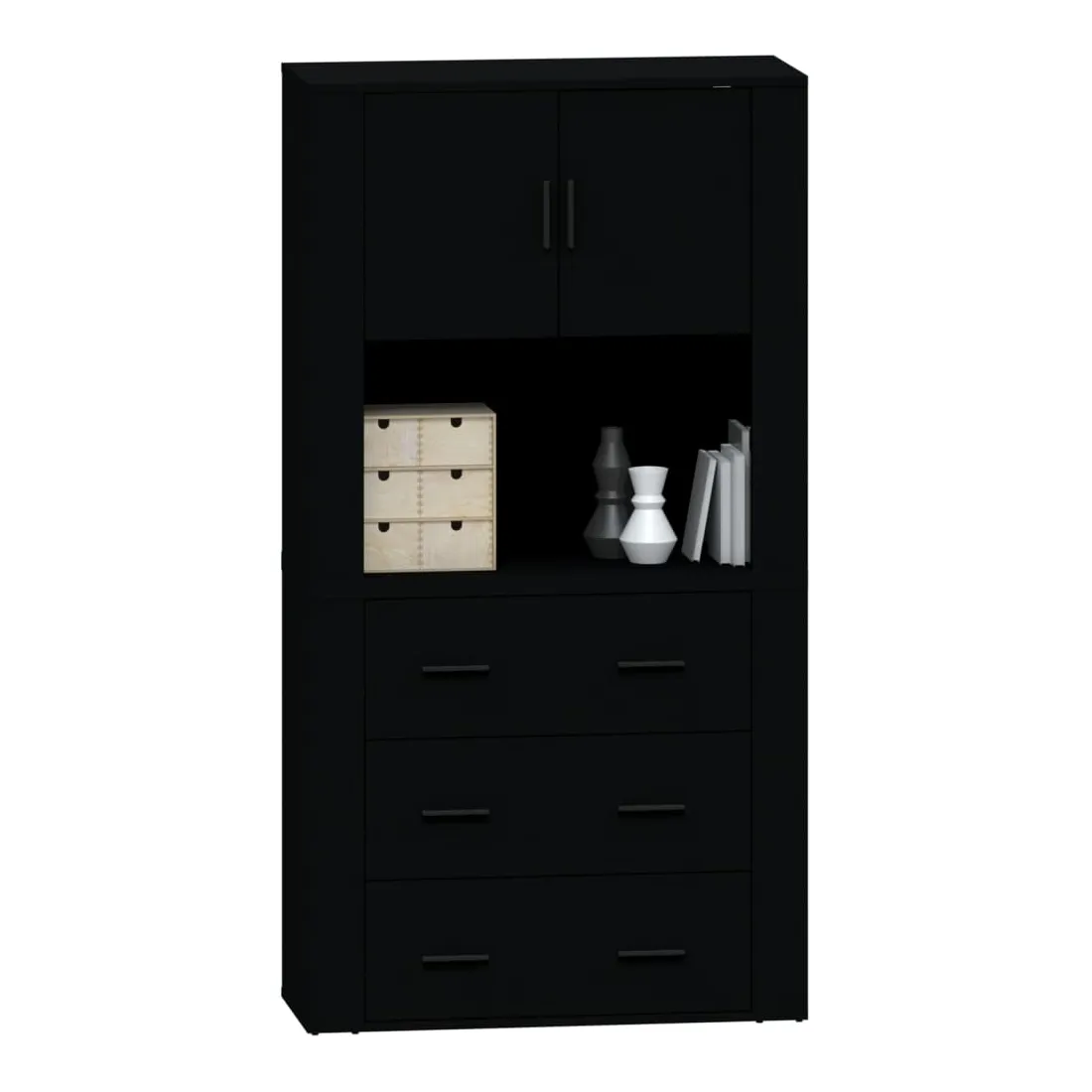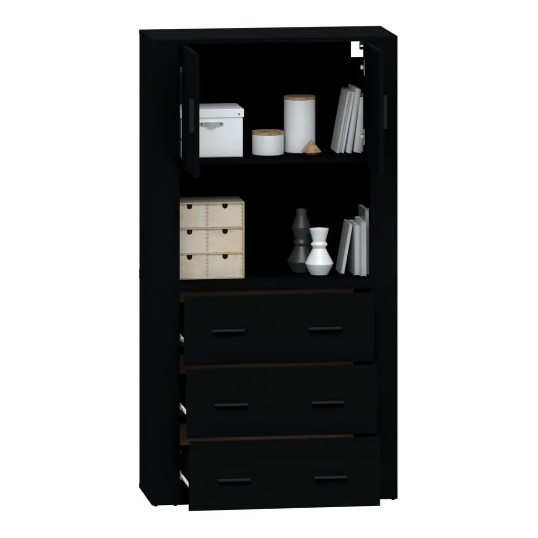 Cherchez-vous un buffet haut de gamme stylé ? Ce buffet haut ajoute un charme unique à votre intérieur existant ! Matériau durable : le bois d'ingénierie est d'une qualité exceptionnelle avec une surface lisse et présente également résistance, stabilité et résistance à l'humidité.Grand espace de rangement : le buffet offre un grand espace de rangement pour garder vos différents articles essentiels quotidiens bien organisés et facilement accessibles.Fonction murale : le meuble de rangement peut être fixé au mur sur le dessus du buffet pour créer un buffet haut, ce qui permet de gagner de l'espace au sol. Ainsi, vous pouvez maximiser votre espace de vie et garder la zone propre et bien rangée. Bon à savoir :Pour faciliter au maximum le montage, chaque produit est livré avec des instructions.Les vis et les chevilles pour l'intérieur du mur ne sont pas incluses. Nous vous conseillons de trouver et d'utiliser des vis et des chevilles adaptées spécifiquement à vos murs. Si vous n'êtes pas sûr, vous pouvez consulter un professionnel. Veuillez lire et suivre chaque étape des instructions. Attention :Pour éviter qu'il ne soit renversé, ce produit doit être utilisé avec le dispositif de fixation au mur fourni.