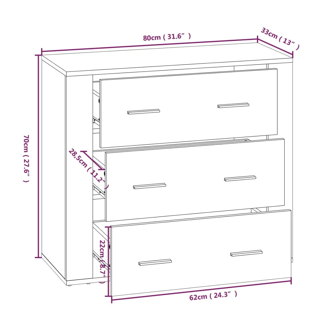 - Dimensions du buffet : 80 x 33 x 70 cm (L x l x H)