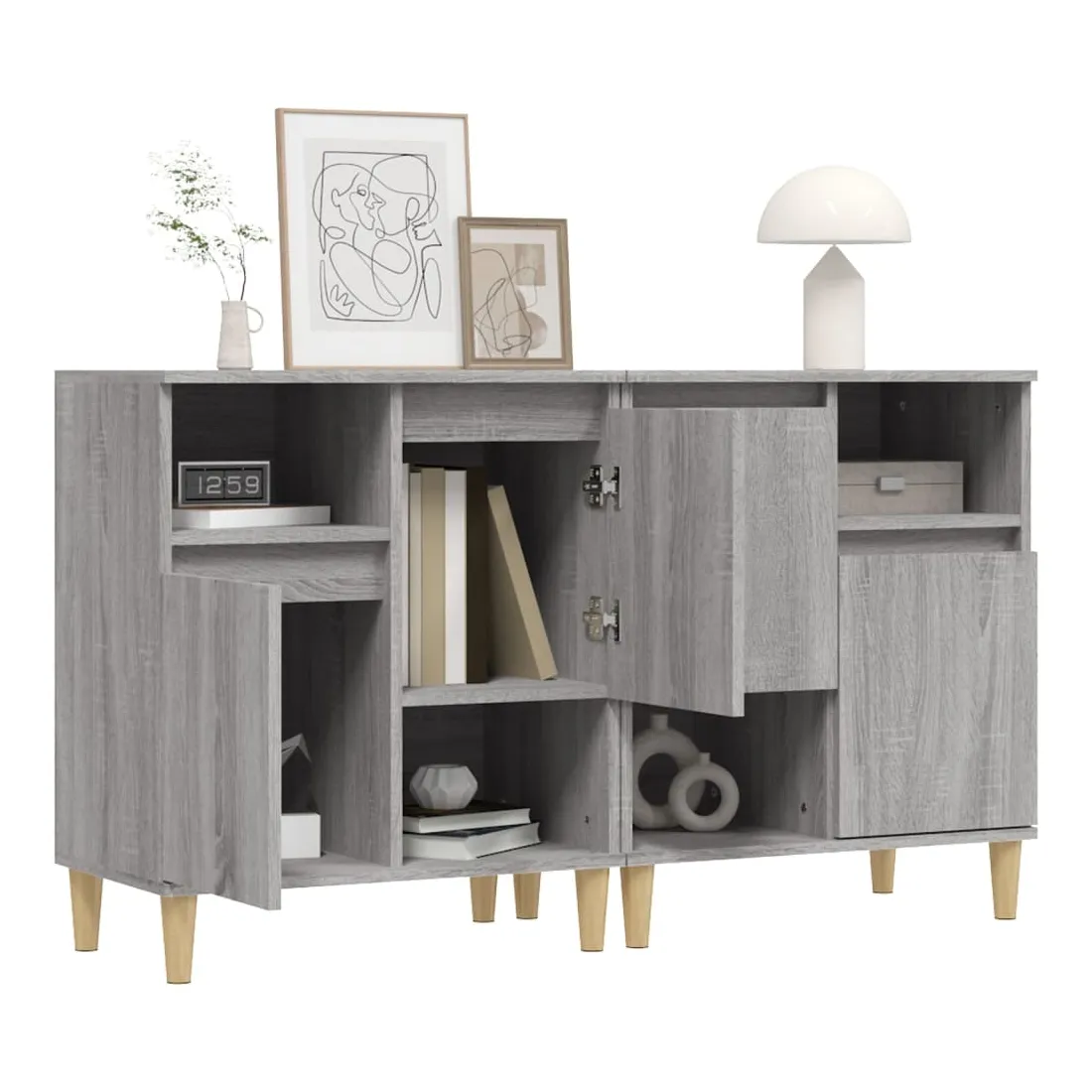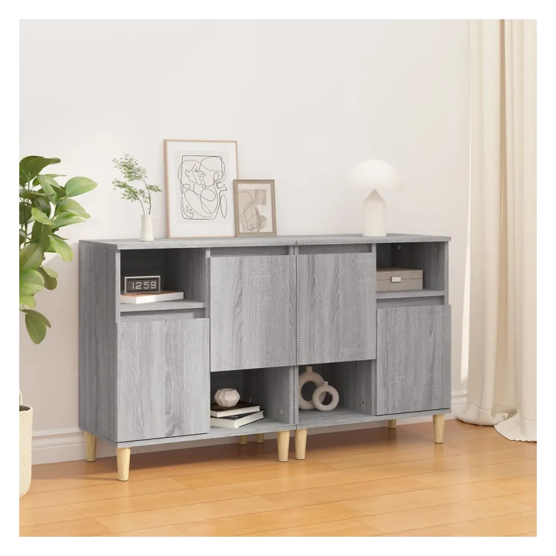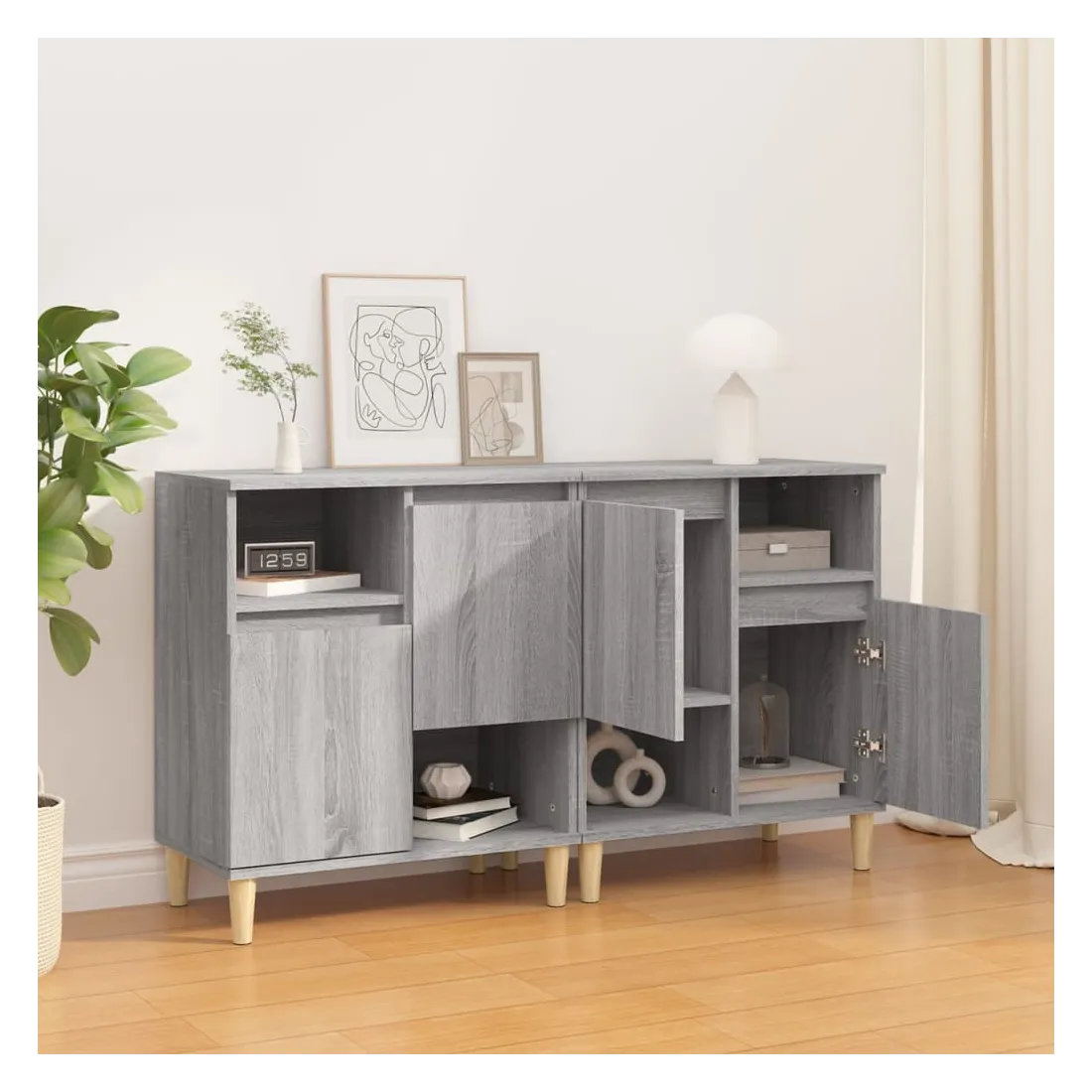 vidaXLCes buffets tendance, au design élégant et classique, sont destinés à améliorer votre intérieur. Matériau durable : le bois d'ingénierie est d'une qualité exceptionnelle avec une surface lisse et présente également une résistance, une stabilité et une résistance à l'humidité. Fabriquée en bois d'ingénierie, l'armoire est facile à nettoyer avec un chiffon humide.Grand espace de rangement : ce buffet dispose de 4 compartiments et de 2 portes, offrant un grand espace de rangement pour garder vos magazines, livres, DVD, appareils multimédias et autres objets essentiels bien organisés et à portée de main.Pieds en bois : les pieds en bois d'eucalyptus massif confèrent à l'armoire de rangement un aspect naturel et agréable tout en assurant sa stabilité.Fonction d'exposition : le haut de l'armoire est idéal pour placer des plantes en pot, des photos encadrées et d'autres objets décoratifs. Bon à savoir :Les portes peuvent être installées de deux manières. Attention :Pour éviter qu'il ne soit renversé, ce produit doit être utilisé avec le dispositif de fixation au mur fourni.