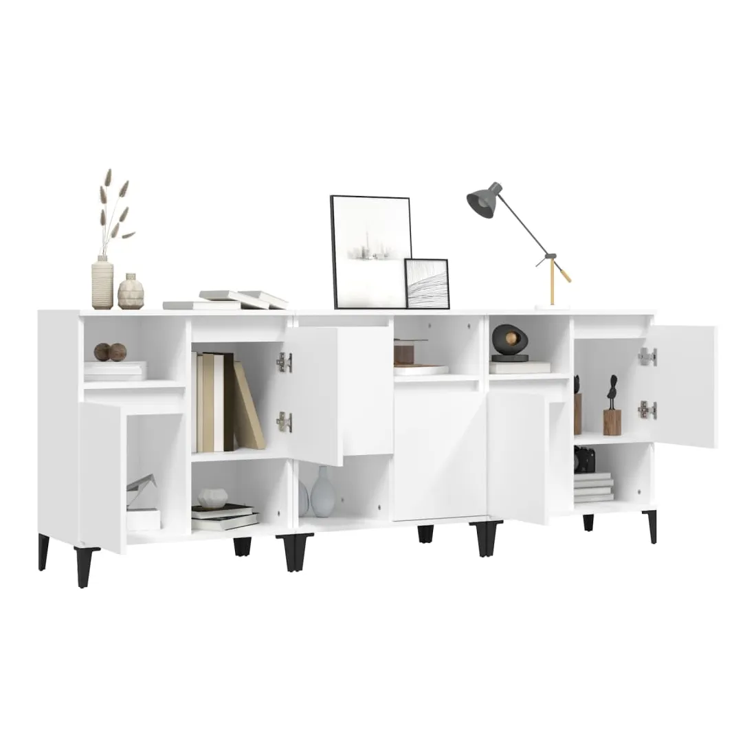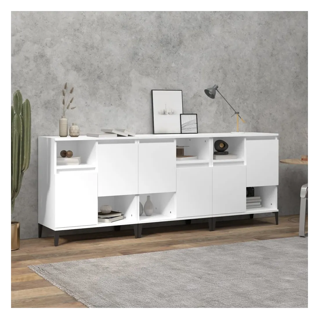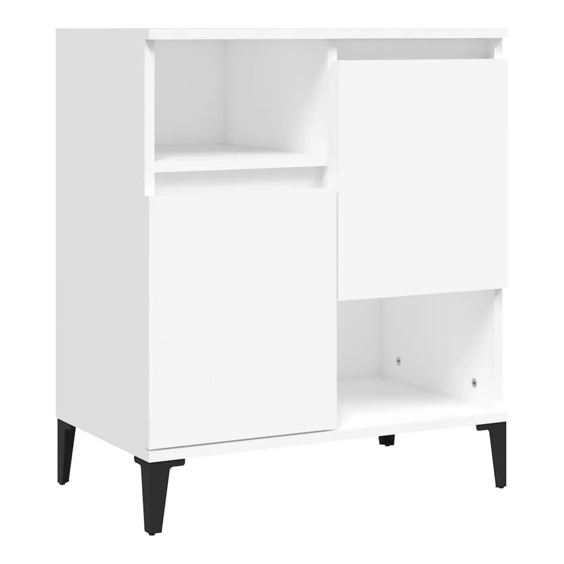 vidaXLCes buffets classiques, au look intemporel, sont conçus pour être un excellent supplément à votre maison. Matériau durable : le bois d'ingénierie est d'une qualité exceptionnelle avec une surface lisse et présente également résistance, stabilité et résistance à l'humidité. Fabriquée en bois d'ingénierie, l'armoire est facile à nettoyer avec un chiffon humide.Grand espace de rangement : équipé de 4 compartiments, le meuble buffet offre un grand espace de rangement pour garder vos différents articles essentiels quotidiens bien organisés et facilement accessibles.Fonction d'affichage : le dessus du placard est idéal pour exposer vos objets décoratifs, albums photo ou petites plantes. Bon à savoir :Les portes peuvent être installées de deux manières. Attention :Pour éviter qu'il ne soit renversé, ce produit doit être utilisé avec le dispositif de fixation au mur fourni.
