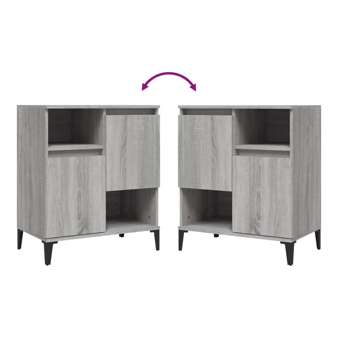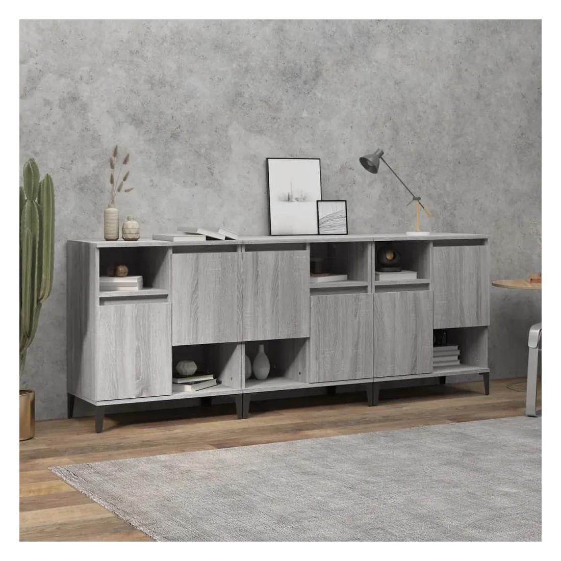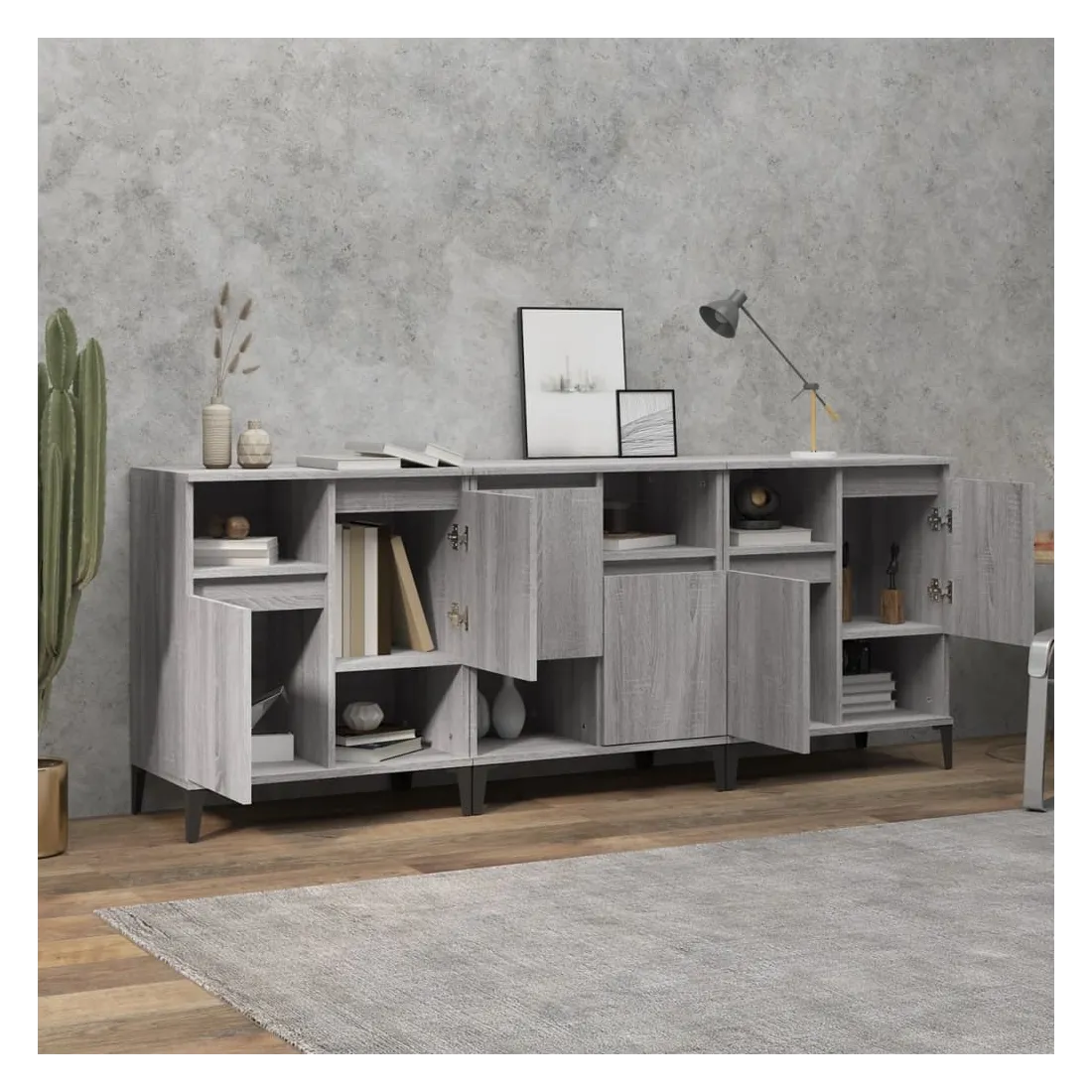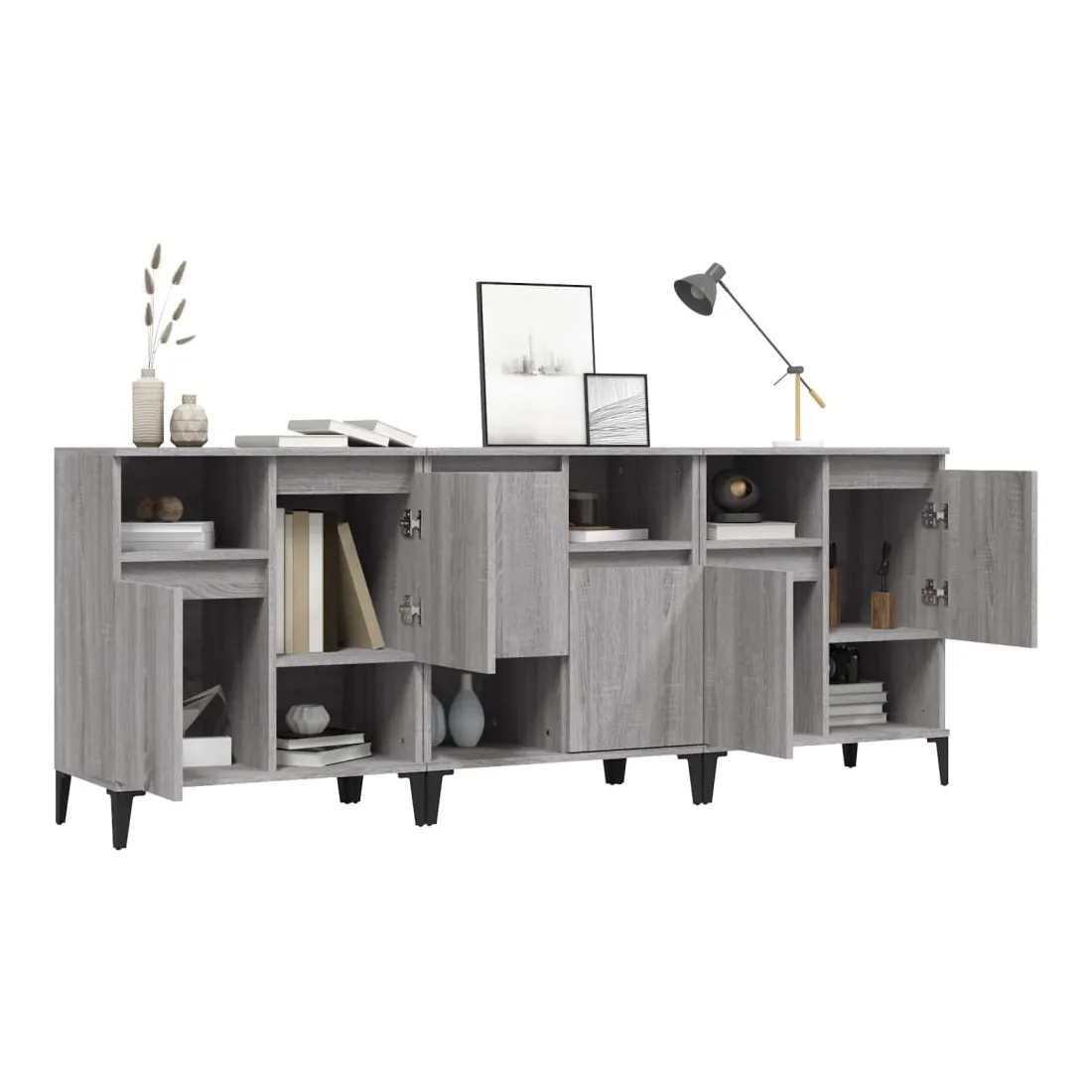 Ces buffets classiques, au look intemporel, sont conçus pour être un excellent supplément à votre maison. Matériau durable : le bois d'ingénierie est d'une qualité exceptionnelle avec une surface lisse et présente également résistance, stabilité et résistance à l'humidité. Fabriquée en bois d'ingénierie, l'armoire est facile à nettoyer avec un chiffon humide.Grand espace de rangement : équipé de 4 compartiments, le meuble buffet offre un grand espace de rangement pour garder vos différents articles essentiels quotidiens bien organisés et facilement accessibles.Fonction d'affichage : le dessus du placard est idéal pour exposer vos objets décoratifs, albums photo ou petites plantes. Bon à savoir :Les portes peuvent être installées de deux manières. Attention :Pour éviter qu'il ne soit renversé, ce produit doit être utilisé avec le dispositif de fixation au mur fourni.