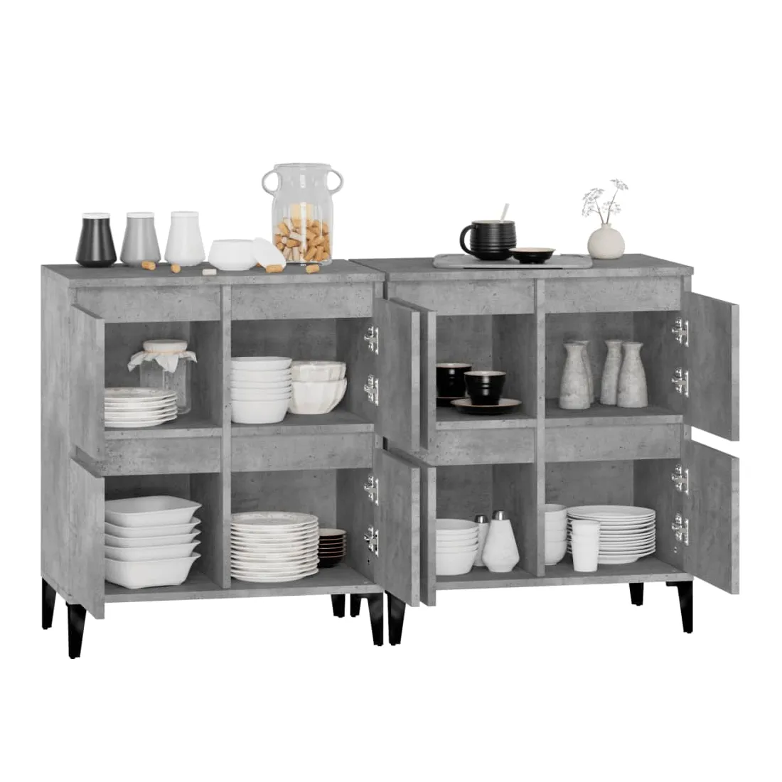 Ces buffets classiques, au look intemporel, sont conçus pour être un excellent supplément à votre maison. Matériau durable : le bois d'ingénierie est d'une qualité exceptionnelle avec une surface lisse et présente également résistance, stabilité et résistance à l'humidité. Fabriquée en bois d'ingénierie, l'armoire est facile à nettoyer avec un chiffon humide.Grand espace de rangement : équipé de 4 compartiments, le meuble buffet offre un grand espace de rangement pour garder vos différents articles essentiels quotidiens bien organisés et facilement accessibles.Fonction d'affichage : le dessus du placard est idéal pour exposer vos objets décoratifs, albums photo ou petites plantes. Attention :Pour éviter qu'il ne soit renversé, ce produit doit être utilisé avec le dispositif de fixation au mur fourni.