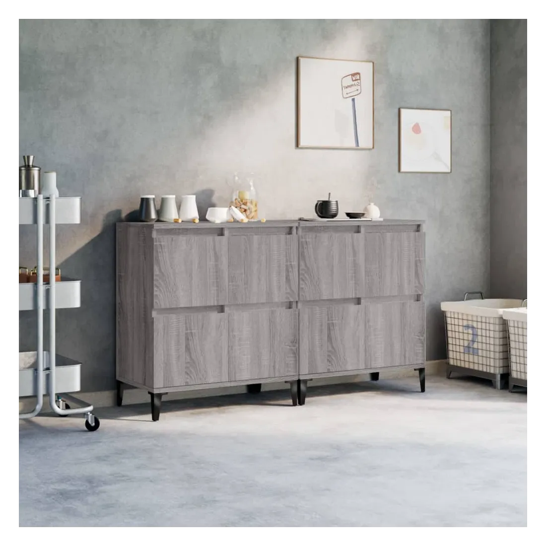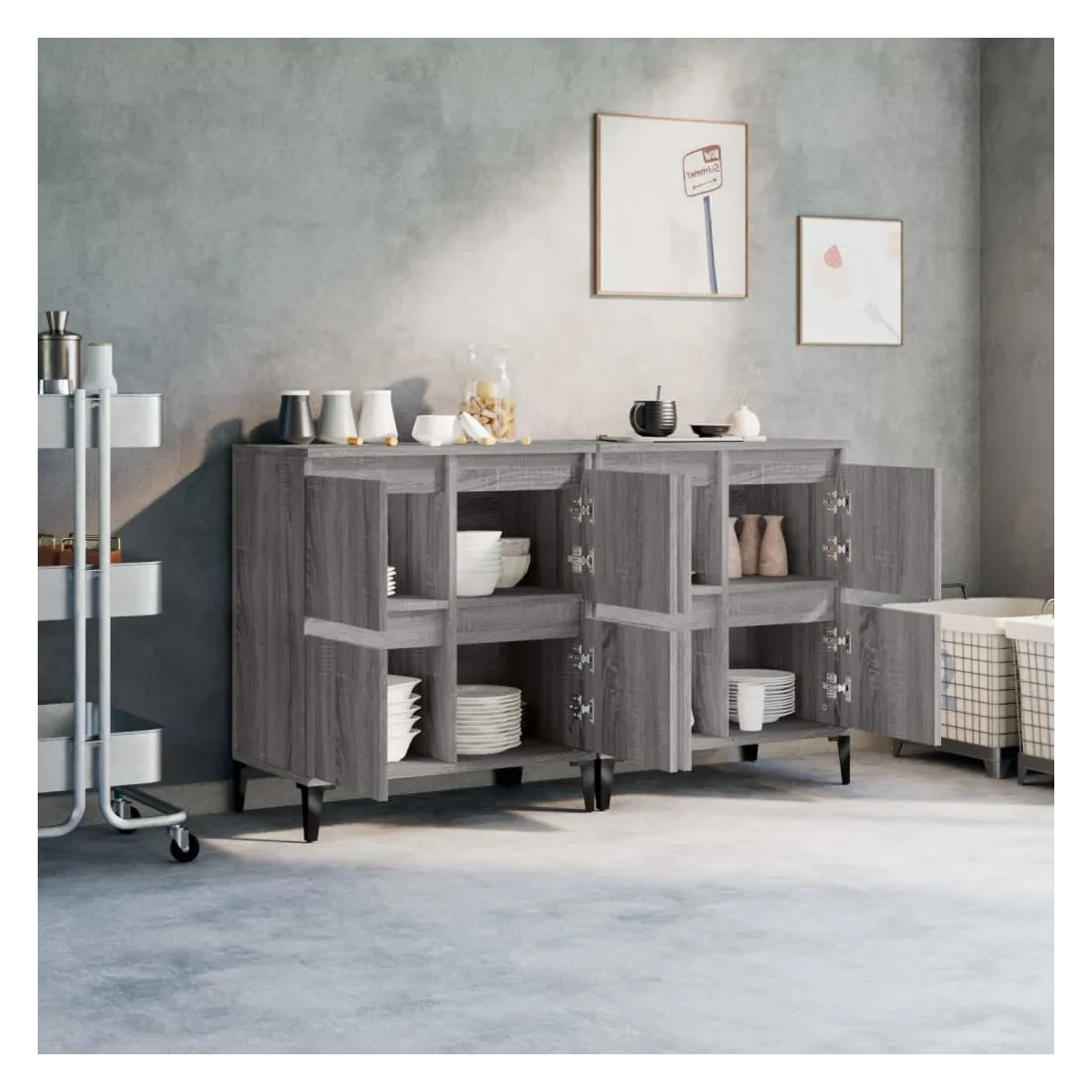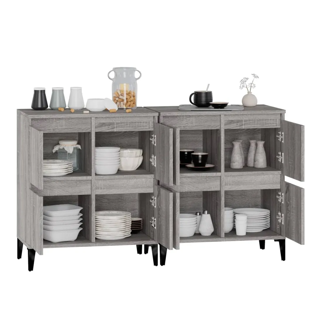 Ces buffets classiques, au look intemporel, sont conçus pour être un excellent supplément à votre maison. Matériau durable : le bois d'ingénierie est d'une qualité exceptionnelle avec une surface lisse et présente également résistance, stabilité et résistance à l'humidité. Fabriquée en bois d'ingénierie, l'armoire est facile à nettoyer avec un chiffon humide.Grand espace de rangement : équipé de 4 compartiments, le meuble buffet offre un grand espace de rangement pour garder vos différents articles essentiels quotidiens bien organisés et facilement accessibles.Fonction d'affichage : le dessus du placard est idéal pour exposer vos objets décoratifs, albums photo ou petites plantes. Attention :Pour éviter qu'il ne soit renversé, ce produit doit être utilisé avec le dispositif de fixation au mur fourni.