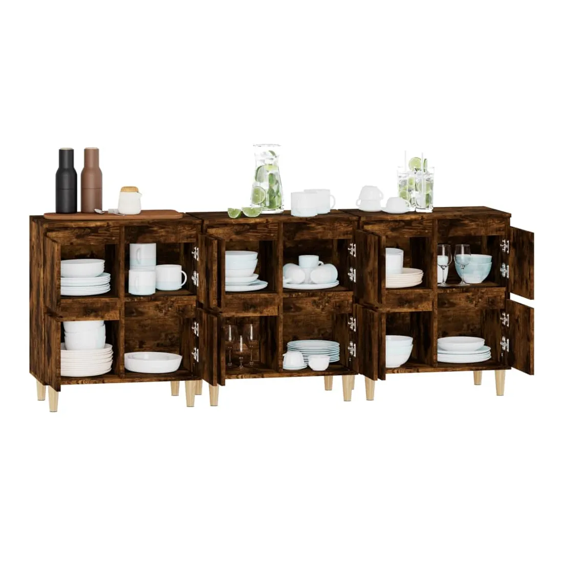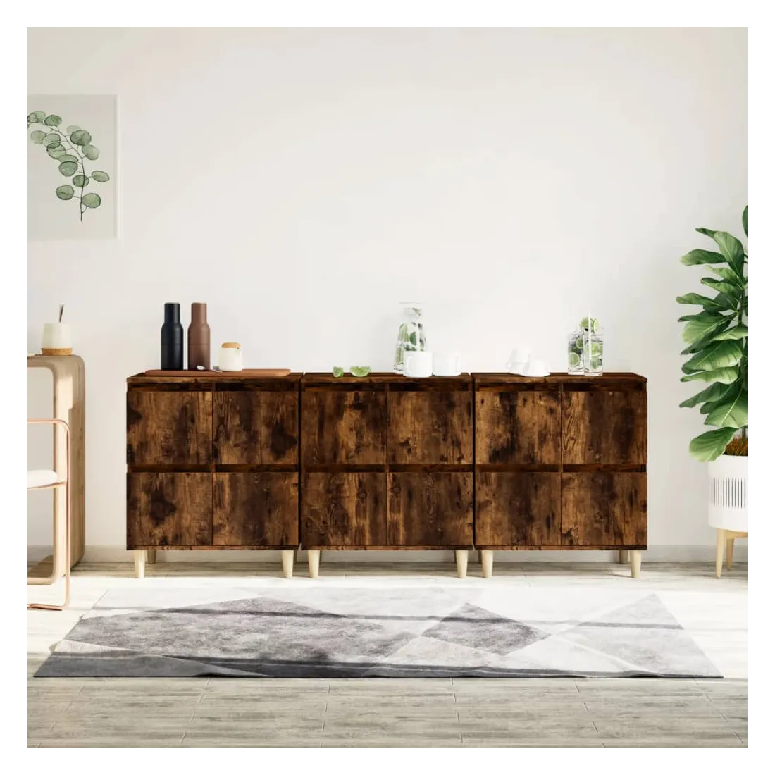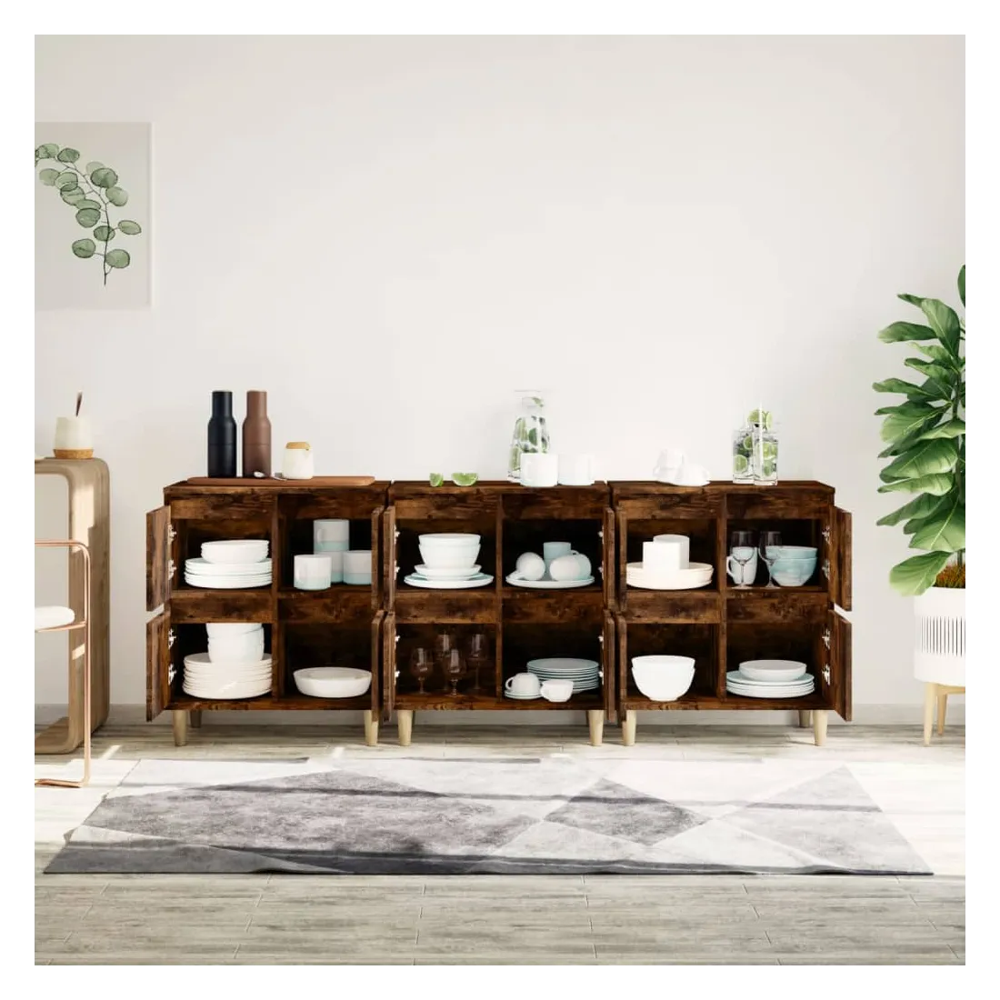 Ces buffets classiques, au look intemporel, sont conçus pour être un excellent supplément à votre maison. Matériau durable : le bois d'ingénierie est d'une qualité exceptionnelle avec une surface lisse et présente également résistance, stabilité et résistance à l'humidité. Fabriquée en bois d'ingénierie, l'armoire est facile à nettoyer avec un chiffon humide.Grand espace de rangement : équipé de 4 compartiments, le meuble buffet offre un grand espace de rangement pour garder vos différents articles essentiels quotidiens bien organisés et facilement accessibles.Fonction d'affichage : le dessus du placard est idéal pour exposer vos objets décoratifs, albums photo ou petites plantes. Attention :Pour éviter qu'il ne soit renversé, ce produit doit être utilisé avec le dispositif de fixation au mur fourni.