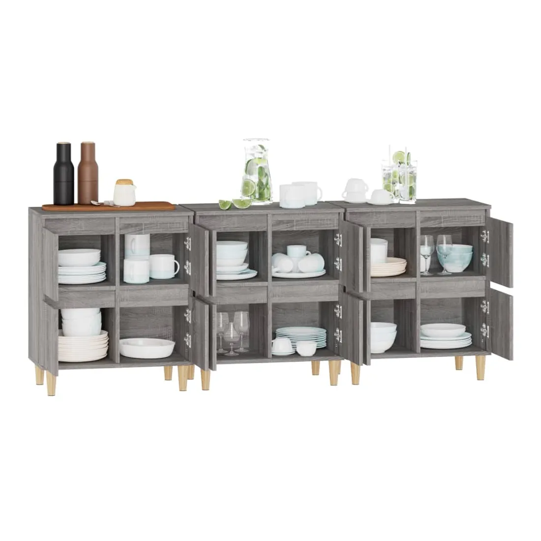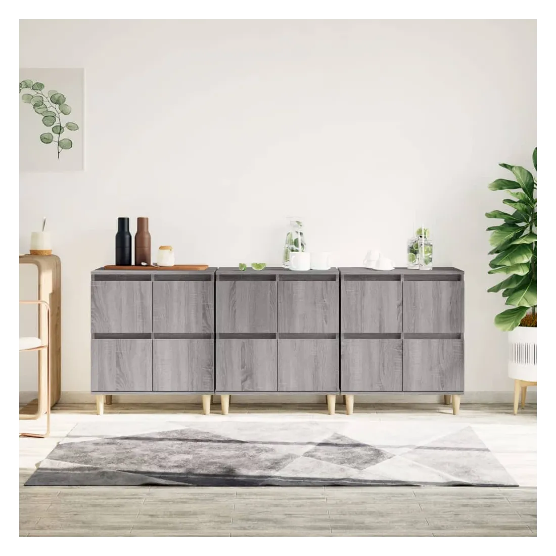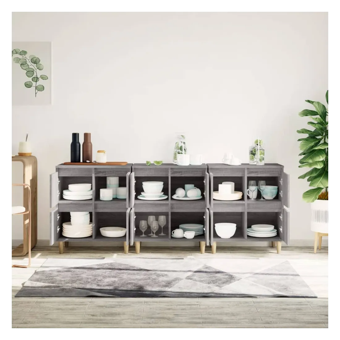 Ces buffets classiques, au look intemporel, sont conçus pour être un excellent supplément à votre maison. Matériau durable : le bois d'ingénierie est d'une qualité exceptionnelle avec une surface lisse et présente également résistance, stabilité et résistance à l'humidité. Fabriquée en bois d'ingénierie, l'armoire est facile à nettoyer avec un chiffon humide.Grand espace de rangement : équipé de 4 compartiments, le meuble buffet offre un grand espace de rangement pour garder vos différents articles essentiels quotidiens bien organisés et facilement accessibles.Fonction d'affichage : le dessus du placard est idéal pour exposer vos objets décoratifs, albums photo ou petites plantes. Attention :Pour éviter qu'il ne soit renversé, ce produit doit être utilisé avec le dispositif de fixation au mur fourni.
