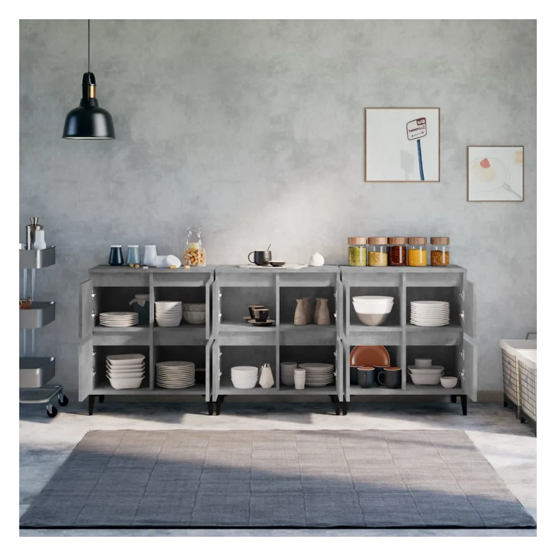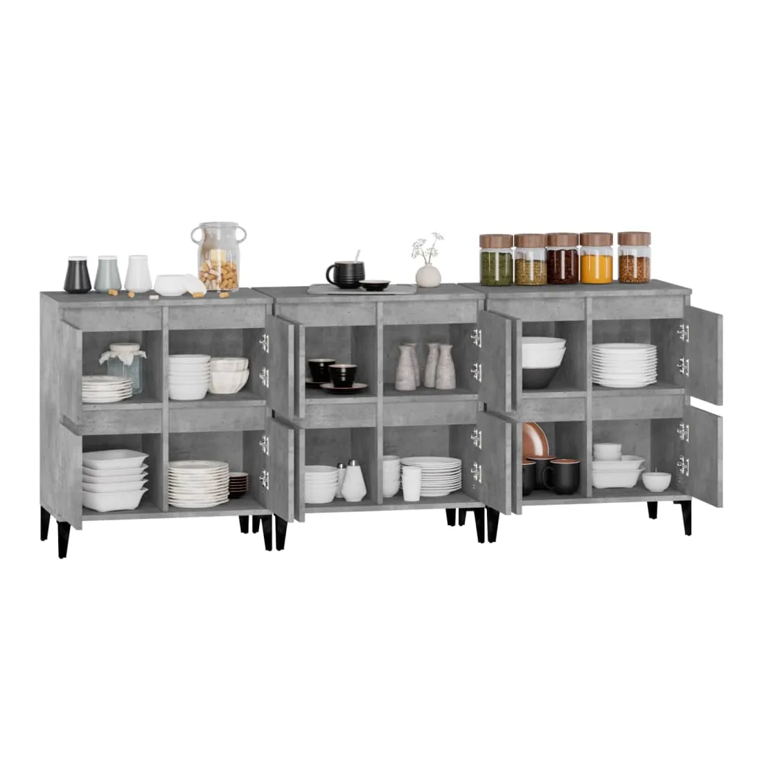 Ces buffets classiques, au look intemporel, sont conçus pour être un excellent supplément à votre maison. Matériau durable : le bois d'ingénierie est d'une qualité exceptionnelle avec une surface lisse et présente également résistance, stabilité et résistance à l'humidité. Fabriquée en bois d'ingénierie, l'armoire est facile à nettoyer avec un chiffon humide.Grand espace de rangement : équipé de 4 compartiments, le meuble buffet offre un grand espace de rangement pour garder vos différents articles essentiels quotidiens bien organisés et facilement accessibles.Fonction d'affichage : le dessus du placard est idéal pour exposer vos objets décoratifs, albums photo ou petites plantes. Attention :Pour éviter qu'il ne soit renversé, ce produit doit être utilisé avec le dispositif de fixation au mur fourni.