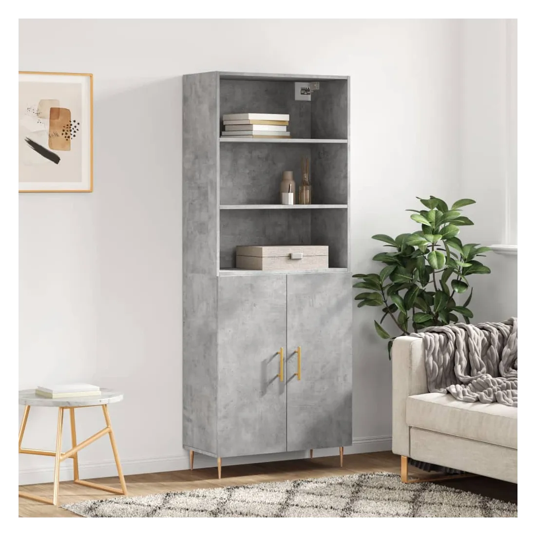 Buffet haut Gris béton 69,5x34x180 cm Bois d'ingénierie