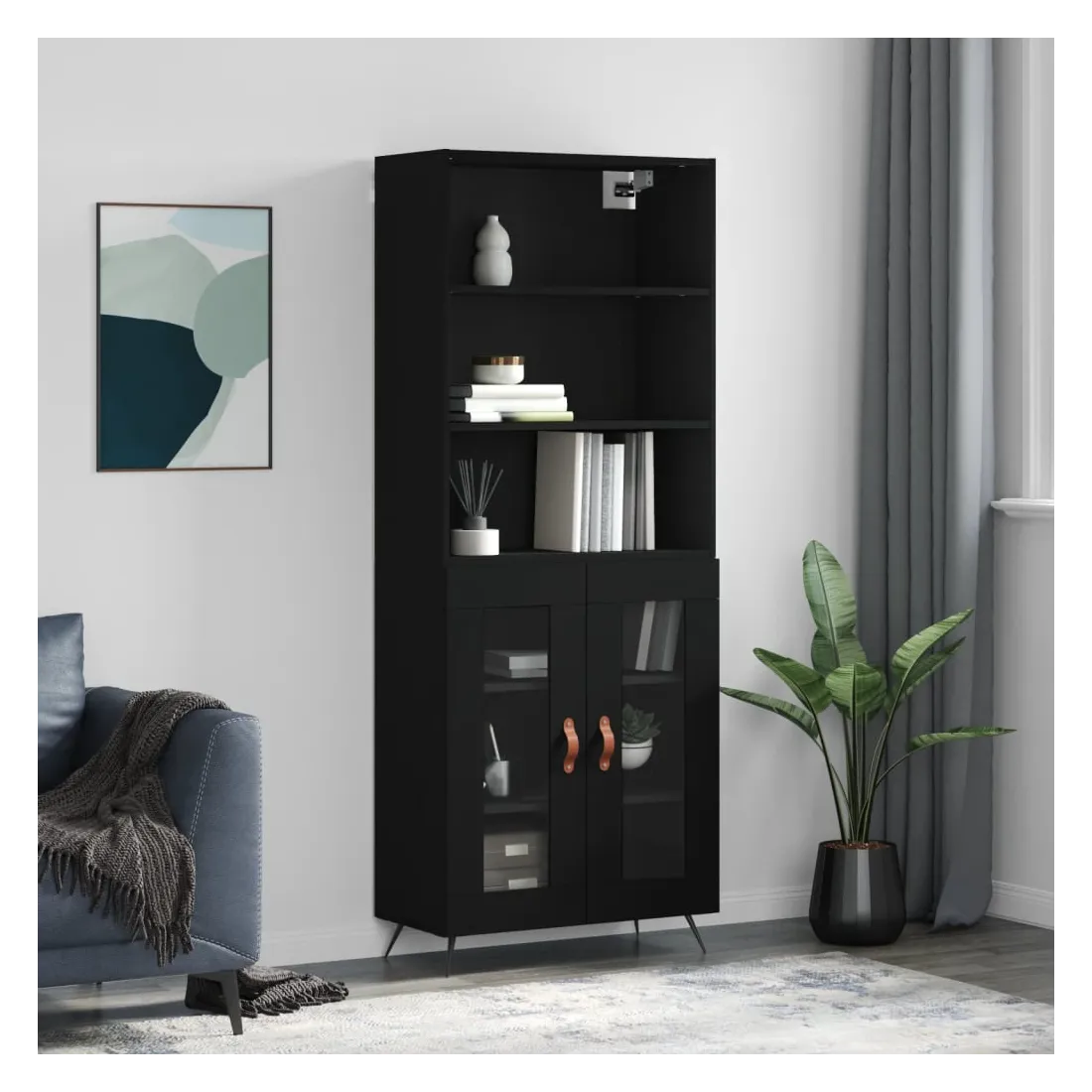 Buffet haut Noir 69,5x34x180 cm Bois d'ingénierie