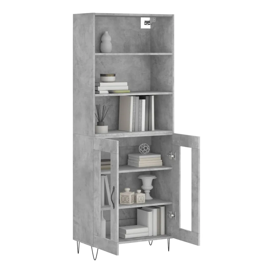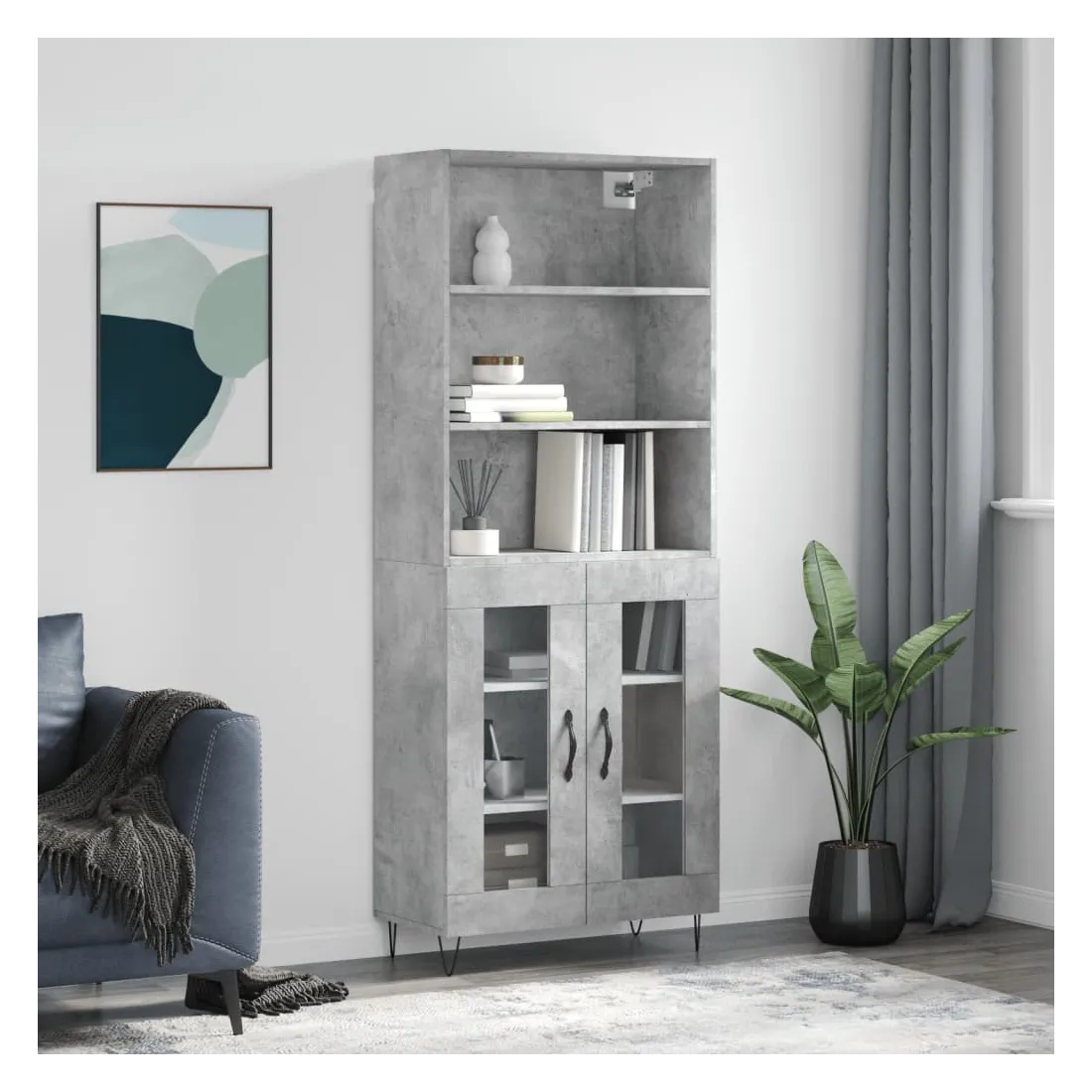 Buffet haut Gris béton 69,5x34x180 cm Bois d'ingénierie