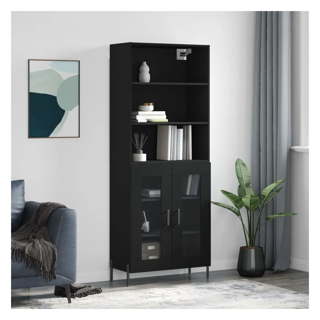 Buffet haut Noir 69,5x34x180 cm Bois d'ingénierie