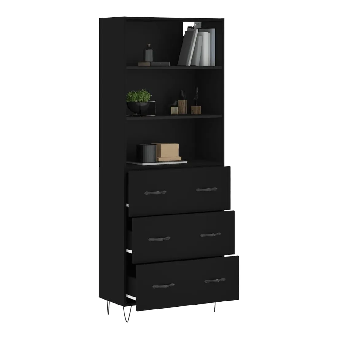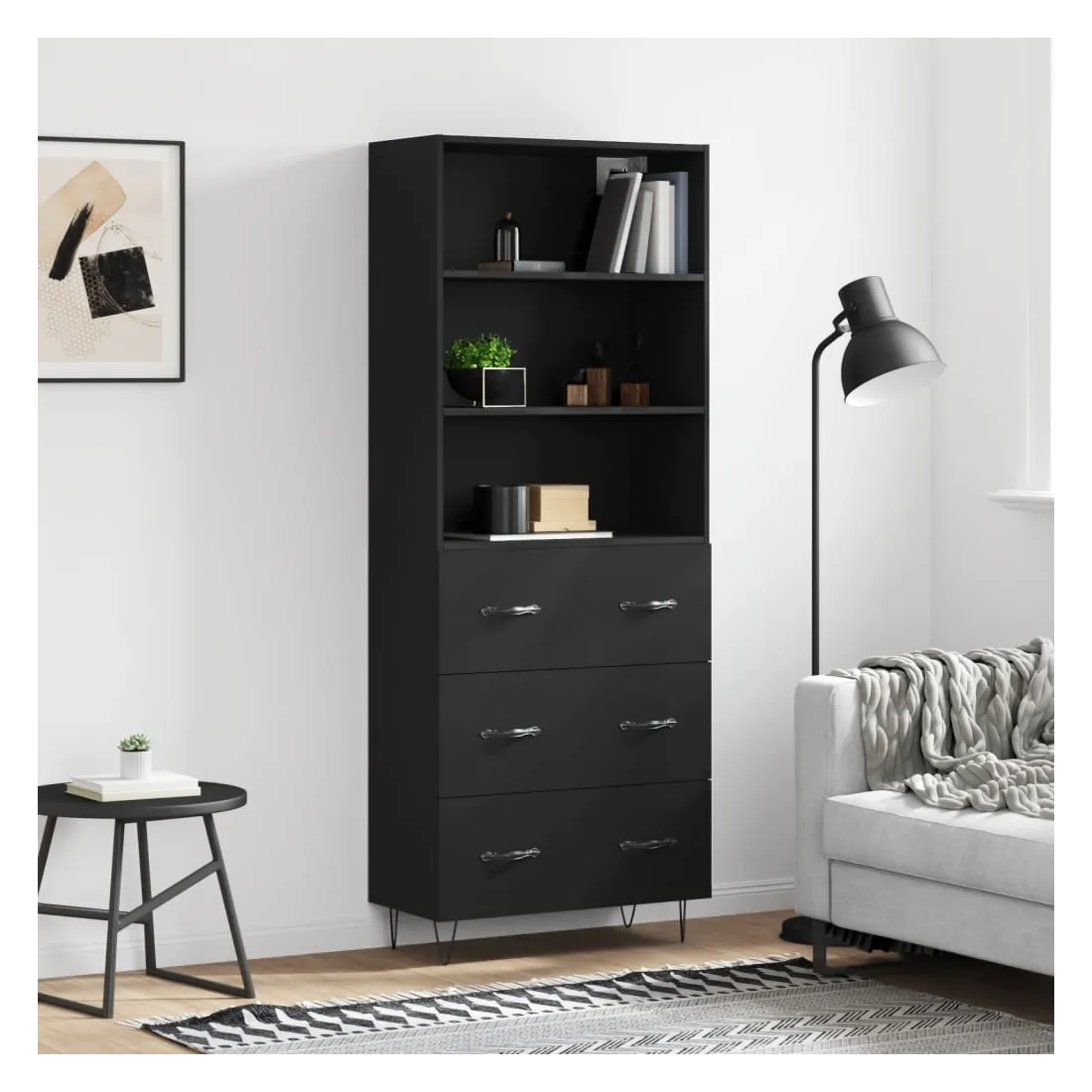 Buffet haut Noir 69,5x34x180 cm Bois d'ingénierie