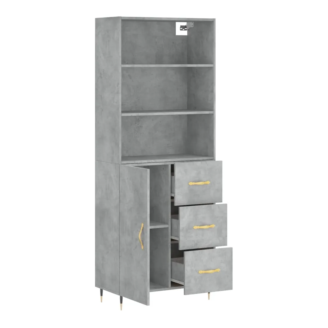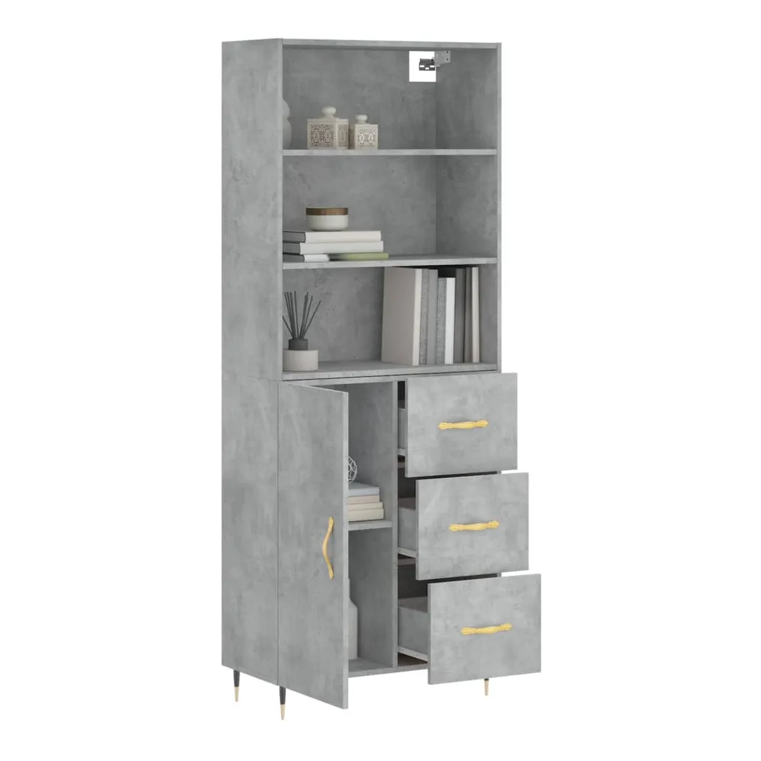 Buffet haut Gris béton 69,5x34x180 cm Bois d'ingénierie