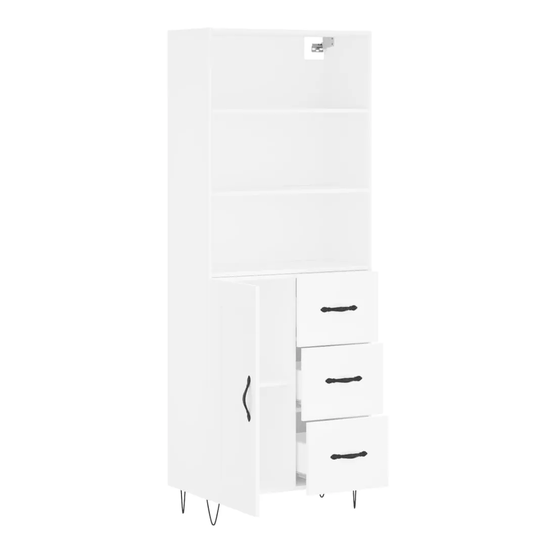 Cherchez-vous un buffet haut de gamme stylé ? Ce buffet haut ajoute un charme élégant à votre intérieur existant ! Matériau durable : le bois d'ingénierie est d'une qualité exceptionnelle avec une surface lisse et présente également résistance, stabilité et résistance à l'humidité.Grand espace de rangement : l'armoire offre un grand espace de rangement pour garder vos différents articles essentiels quotidiens bien organisés et facilement accessibles.Porte pratique : gardez votre espace sans encombrement en cachant de petits articles essentiels derrière la porte de l'armoire de rangement.Pieds en métal : les pieds en métal ajoutent un style calme à votre intérieur tout en assurant la stabilité. Attention :Pour éviter qu'il ne soit renversé, ce produit doit être utilisé avec le dispositif de fixation au mur fourni. Bon à savoir :Les vis et les chevilles pour l'intérieur du mur ne sont pas incluses. Nous vous conseillons de trouver et d'utiliser des vis et des chevilles adaptées spécifiquement à vos murs. Si vous n'êtes pas sûr, vous pouvez consulter un professionnel. Veuillez lire et suivre chaque étape des instructions.