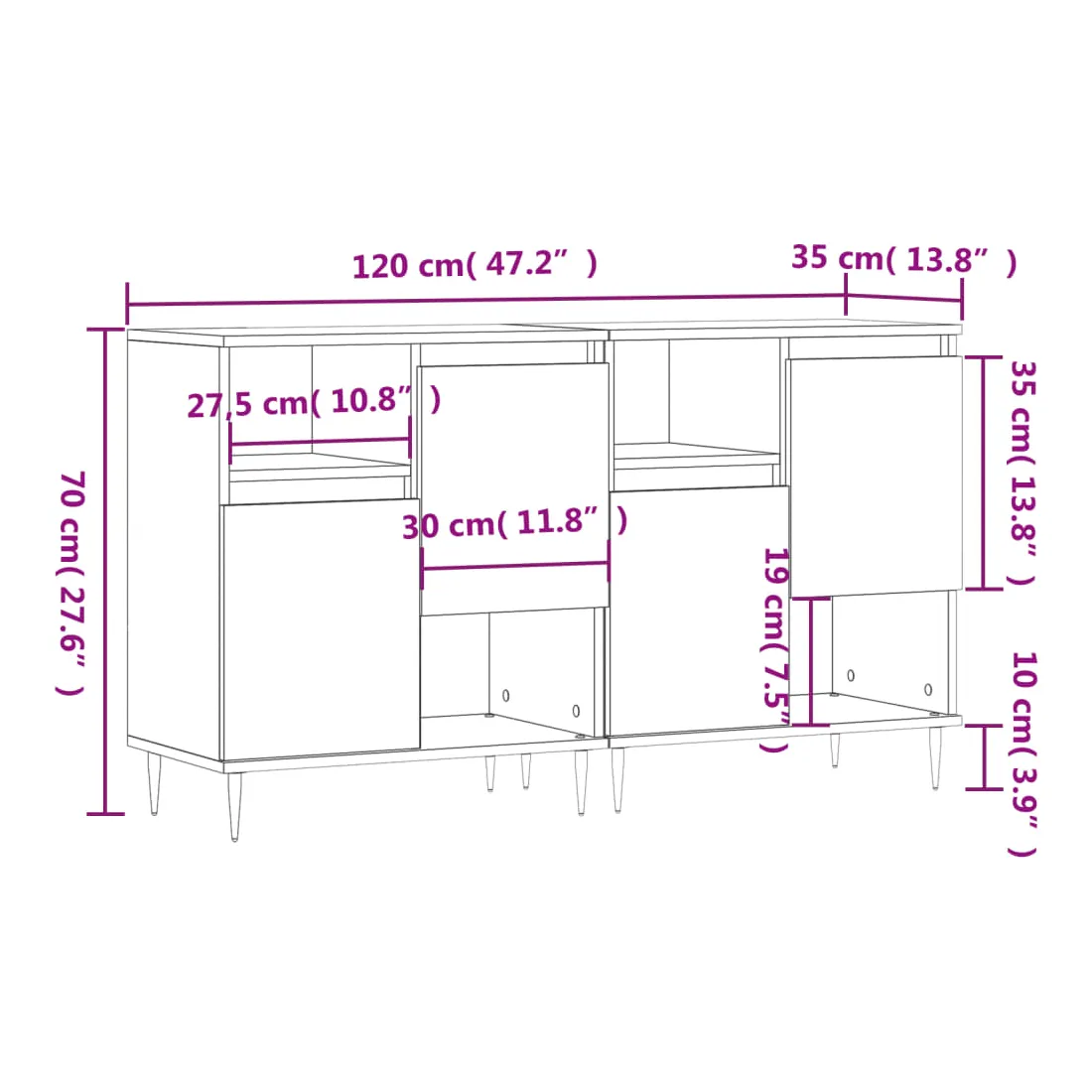 - Dimensions totales : 120 x 35 x 70 cm (l x P x H)