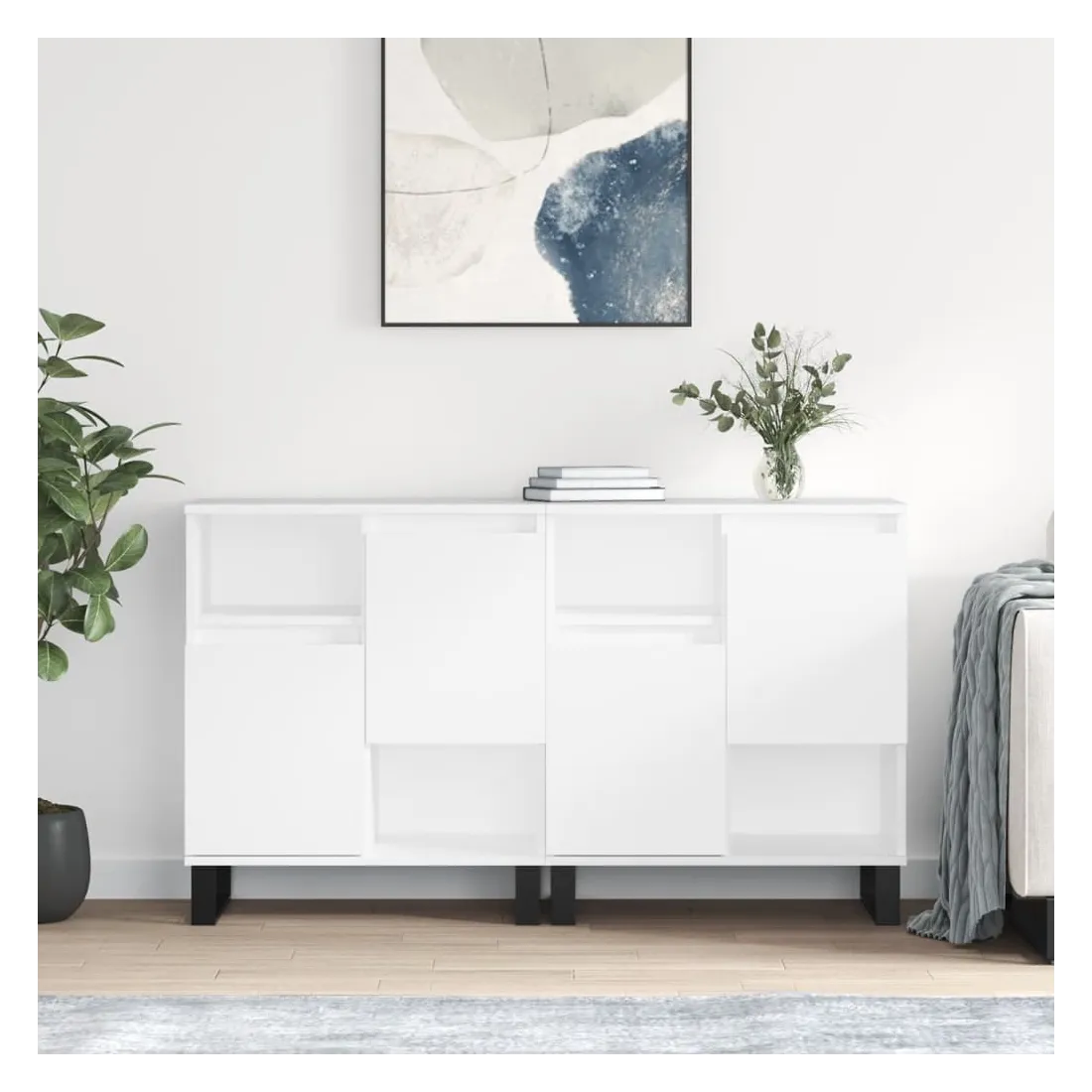 Ces buffets classiques, au look intemporel, sont conçus pour être un excellent supplément à votre maison. Matériau durable : le bois d'ingénierie est d'une qualité exceptionnelle avec une surface lisse et présente également résistance, stabilité et résistance à l'humidité.Grand espace de rangement : l'armoire offre un grand espace de rangement pour garder vos différents articles essentiels quotidiens bien organisés et facilement accessibles.Fonction d'affichage : vous pouvez également placer vos photos, décorations ou fleurs préférées sur l'armoire de rangement pour enrichir votre vie. Attention :Pour éviter qu'il ne soit renversé, ce produit doit être utilisé avec le dispositif de fixation au mur fourni.
