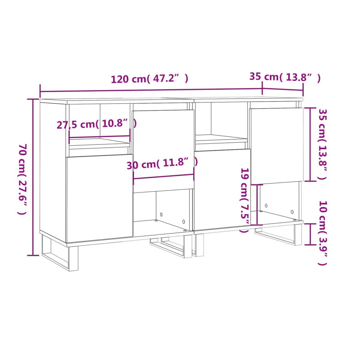 - Dimensions totales : 120 x 35 x 70 cm (l x P x H)
