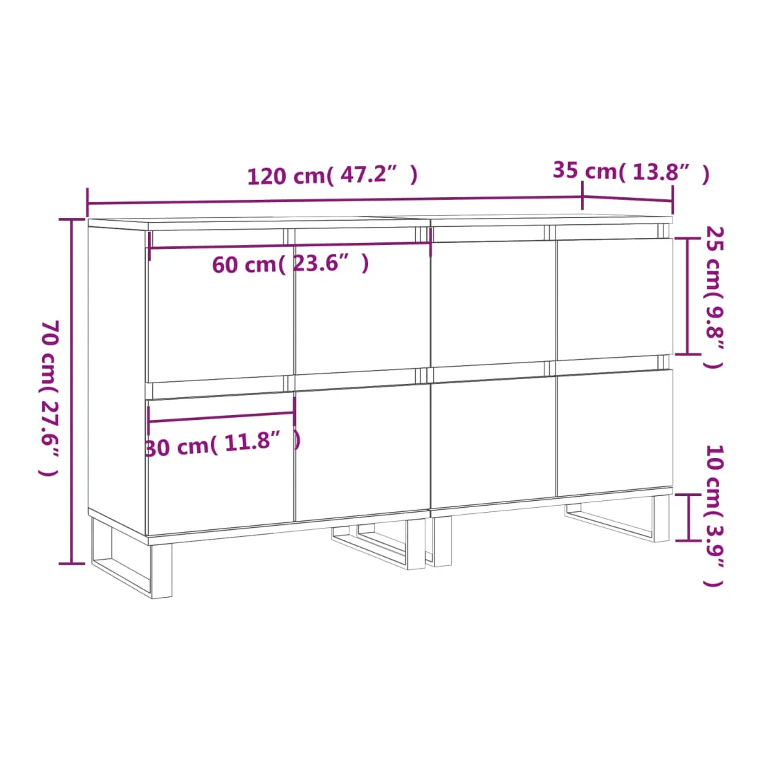 - Dimensions totales : 120 x 35 x 70 cm (l x P x H)