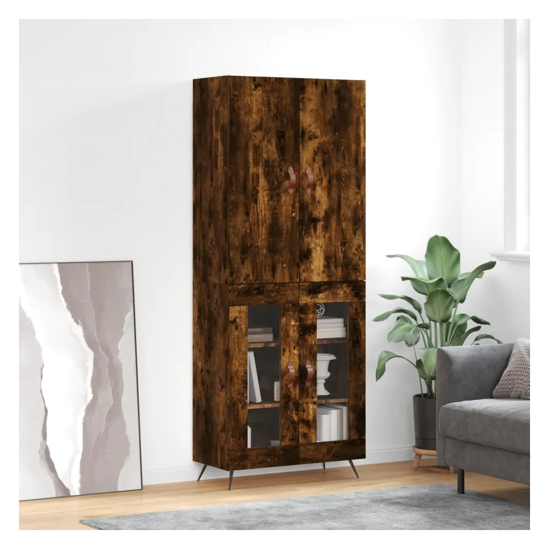Buffet haut Chêne fumé 69,5x34x180 cm Bois d'ingénierie
