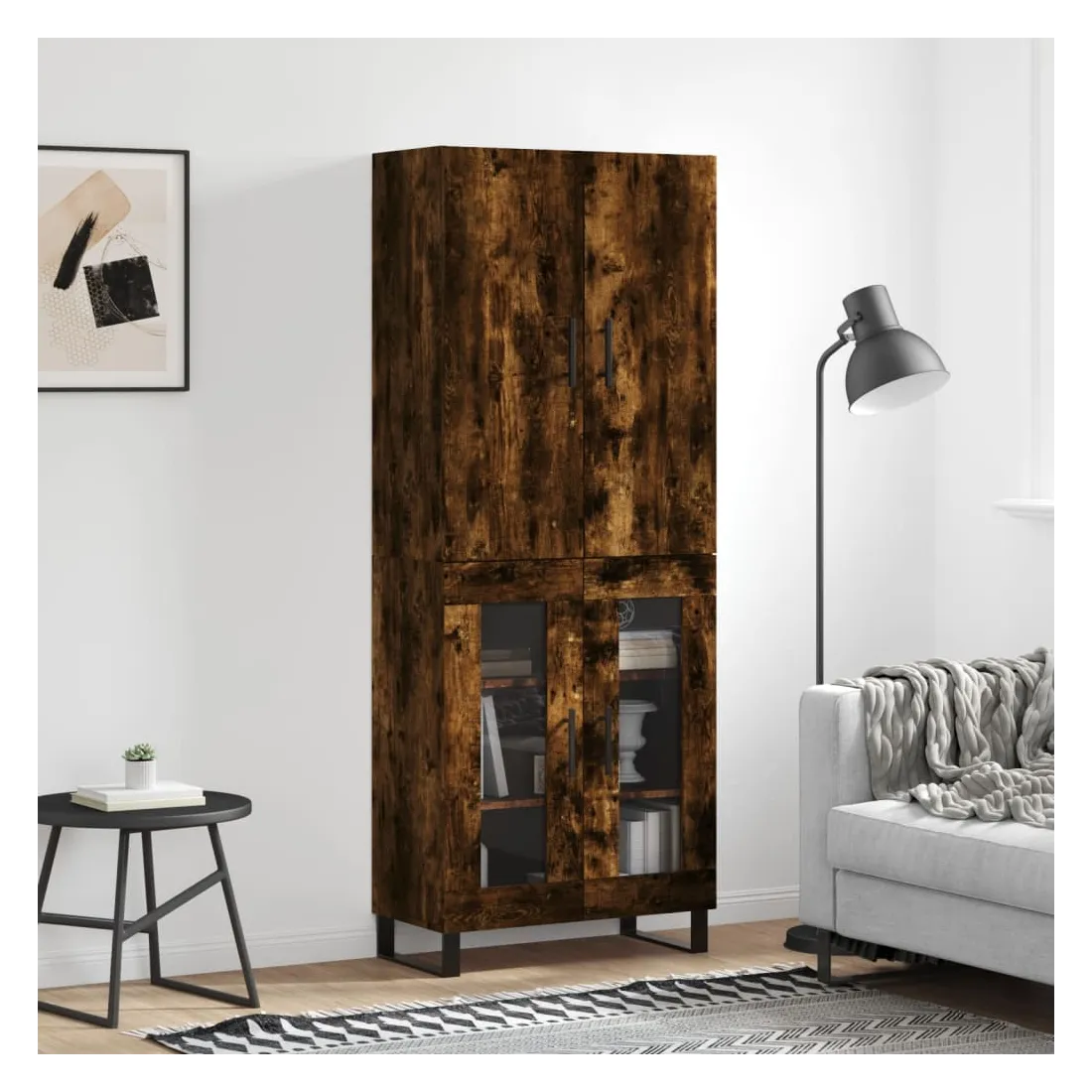 Buffet haut Chêne fumé 69,5x34x180 cm Bois d'ingénierie