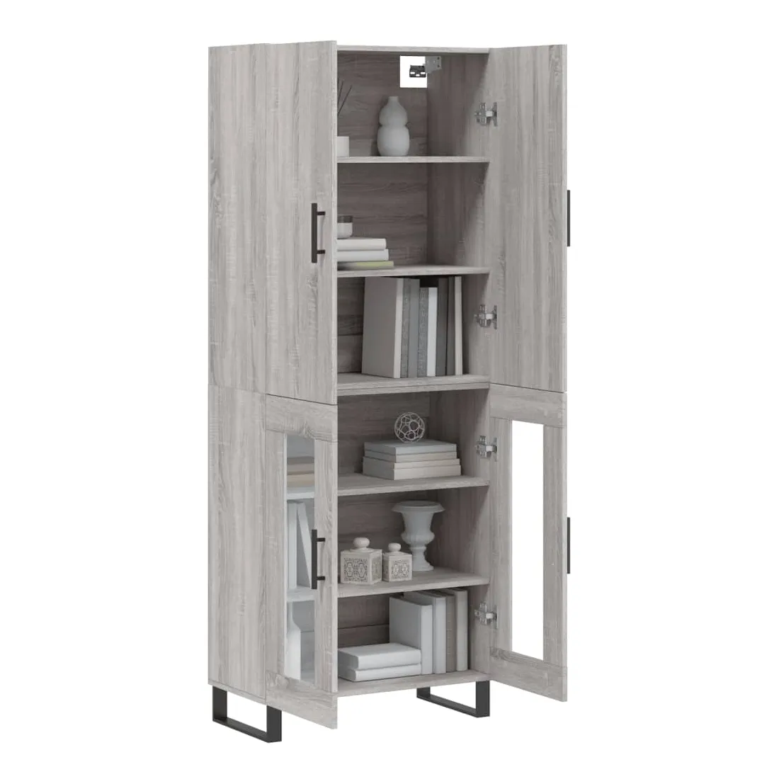 Cherchez-vous un buffet haut de gamme stylé ? Ce buffet haut ajoute un charme élégant à votre intérieur existant ! Matériau durable : le bois d'ingénierie est d'une qualité exceptionnelle avec une surface lisse et présente également résistance, stabilité et résistance à l'humidité.Grand espace de rangement : l'armoire latérale offre un grand espace de rangement pour garder vos différents articles essentiels quotidiens bien organisés et facilement accessibles.Design en verre : le design en verre met en valeur l'élégance de l'armoire latérale et vous permet d'exposer vos objets préférés.Porte pratique : gardez votre espace sans encombrement en cachant de petits articles essentiels derrière les portes de l'armoire de rangement.Pieds en métal : les pieds en métal ajoutent un style calme à votre intérieur tout en assurant la stabilité. Attention :Pour éviter qu'il ne soit renversé, ce produit doit être utilisé avec le dispositif de fixation au mur fourni. Bon à savoir :Les vis et les chevilles pour l'intérieur du mur ne sont pas incluses. Nous vous conseillons de trouver et d'utiliser des vis et des chevilles adaptées spécifiquement à vos murs. Si vous n'êtes pas sûr, vous pouvez consulter un professionnel. Veuillez lire et suivre chaque étape des instructions.