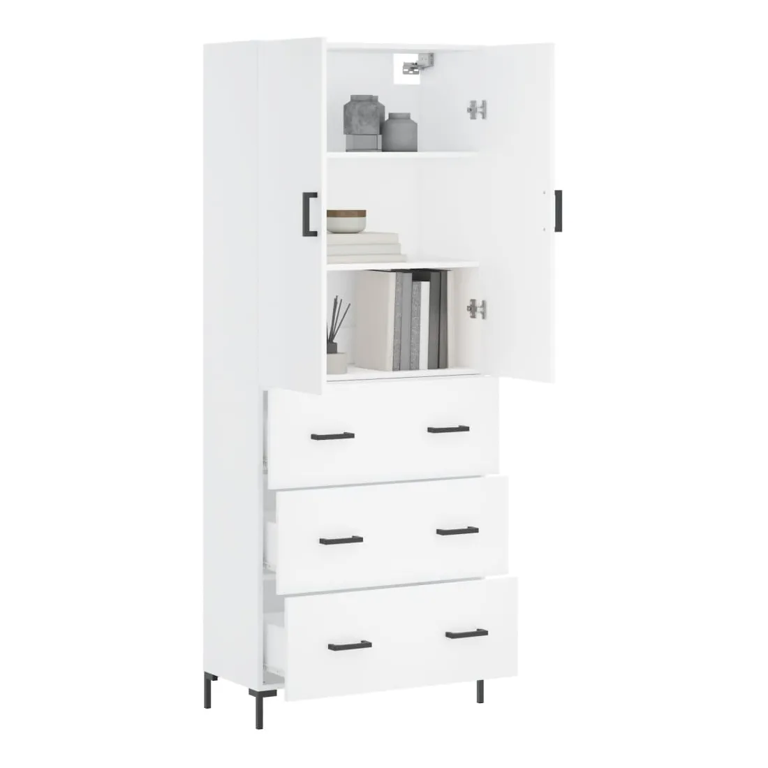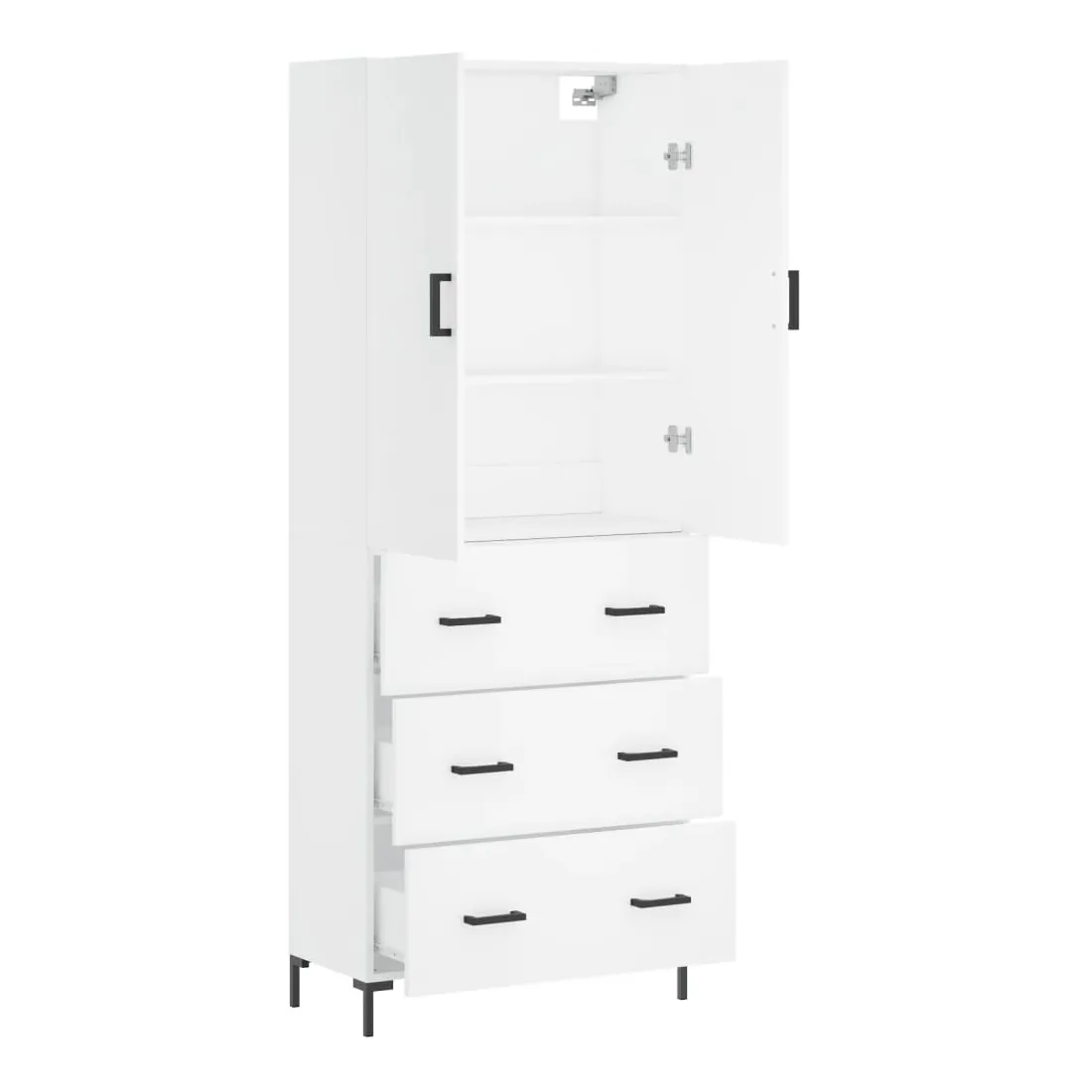 Cherchez-vous un buffet haut de gamme stylé ? Ce buffet haut ajoute un charme élégant à votre intérieur existant ! Matériau durable : le bois d'ingénierie est d'une qualité exceptionnelle avec une surface lisse et présente également résistance, stabilité et résistance à l'humidité.Grand espace de rangement : l'armoire offre un grand espace de rangement pour garder vos différents articles essentiels quotidiens bien organisés et facilement accessibles.Porte pratique : gardez votre espace sans encombrement en cachant de petits articles essentiels derrière les portes de l'armoire de rangement.Pieds en métal : les pieds en métal ajoutent un style calme à votre intérieur tout en assurant la stabilité. Attention :Pour éviter qu'il ne soit renversé, ce produit doit être utilisé avec le dispositif de fixation au mur fourni. Bon à savoir :Les vis et les chevilles pour l'intérieur du mur ne sont pas incluses. Nous vous conseillons de trouver et d'utiliser des vis et des chevilles adaptées spécifiquement à vos murs. Si vous n'êtes pas sûr, vous pouvez consulter un professionnel. Veuillez lire et suivre chaque étape des instructions.
