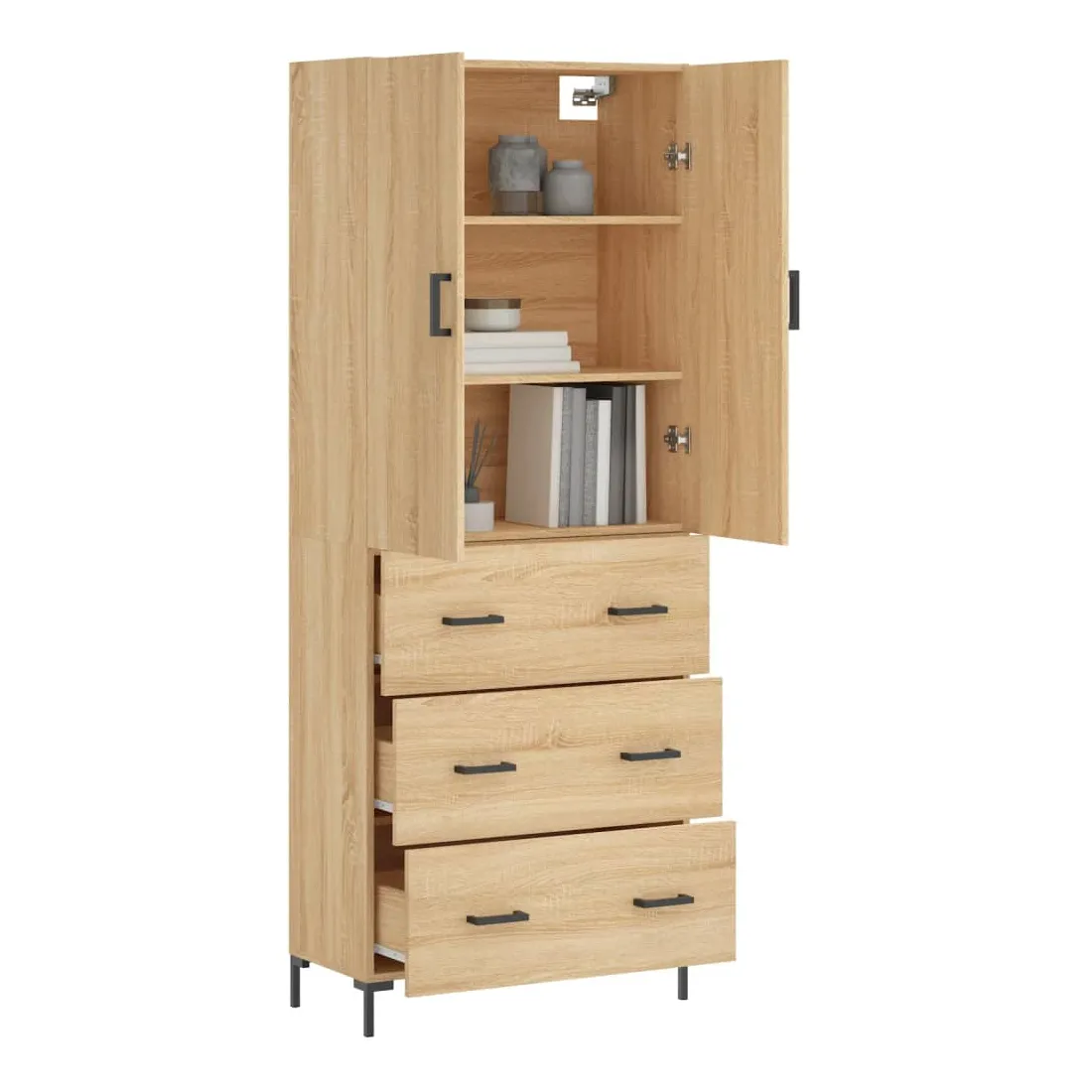 Cherchez-vous un buffet haut de gamme stylé ? Ce buffet haut ajoute un charme élégant à votre intérieur existant ! Matériau durable : le bois d'ingénierie est d'une qualité exceptionnelle avec une surface lisse et présente également résistance, stabilité et résistance à l'humidité.Grand espace de rangement : l'armoire offre un grand espace de rangement pour garder vos différents articles essentiels quotidiens bien organisés et facilement accessibles.Porte pratique : gardez votre espace sans encombrement en cachant de petits articles essentiels derrière les portes de l'armoire de rangement.Pieds en métal : les pieds en métal ajoutent un style calme à votre intérieur tout en assurant la stabilité. Attention :Pour éviter qu'il ne soit renversé, ce produit doit être utilisé avec le dispositif de fixation au mur fourni. Bon à savoir :Les vis et les chevilles pour l'intérieur du mur ne sont pas incluses. Nous vous conseillons de trouver et d'utiliser des vis et des chevilles adaptées spécifiquement à vos murs. Si vous n'êtes pas sûr, vous pouvez consulter un professionnel. Veuillez lire et suivre chaque étape des instructions.