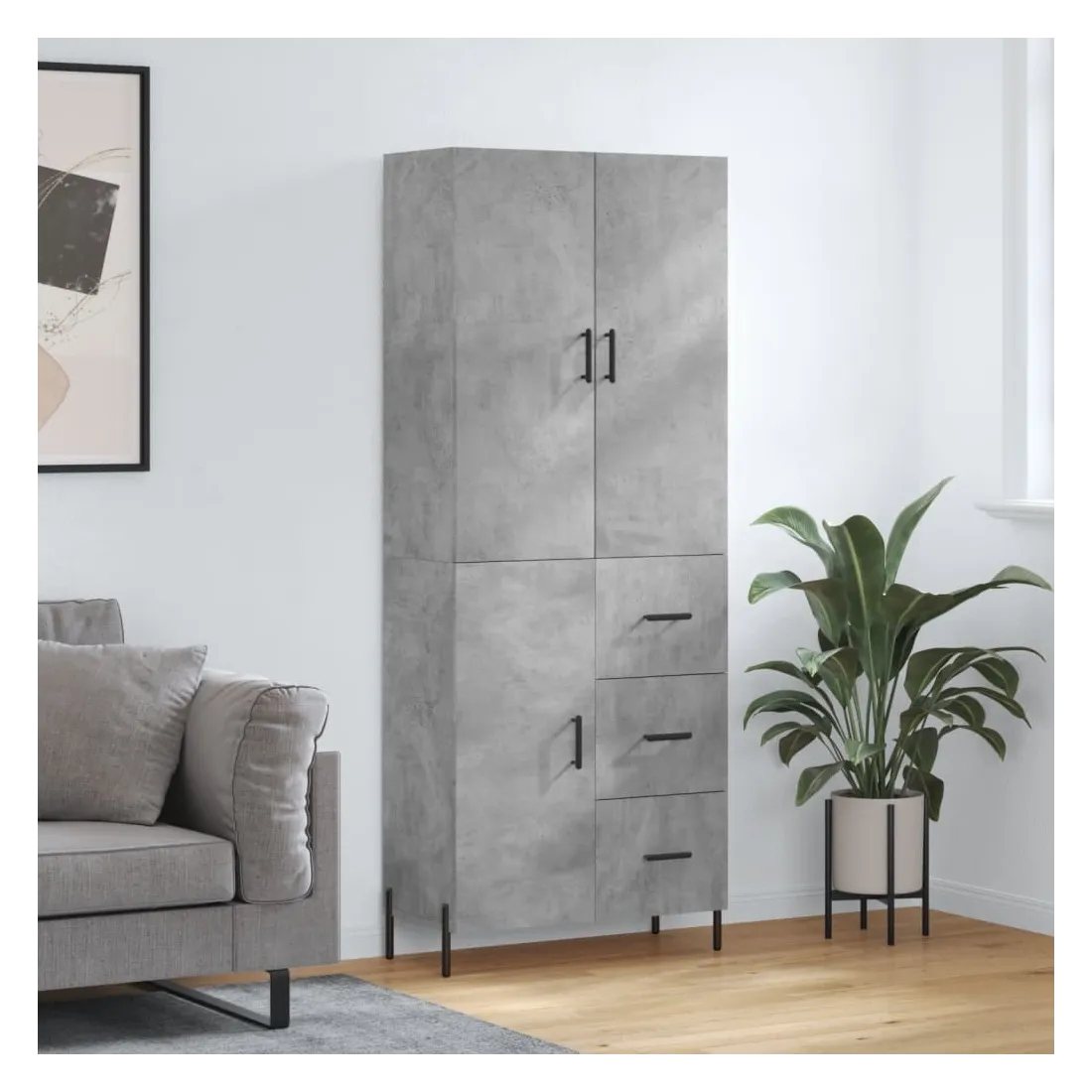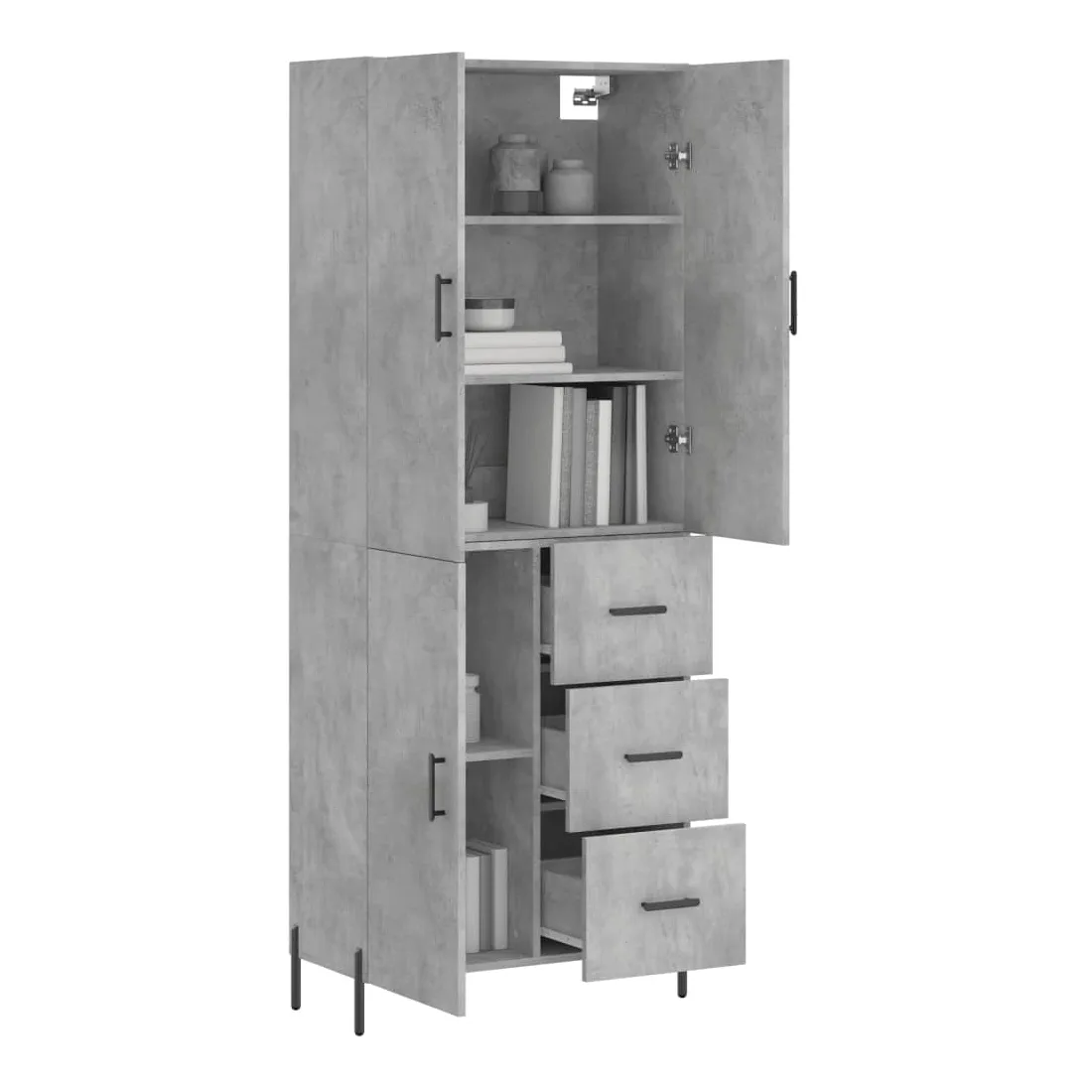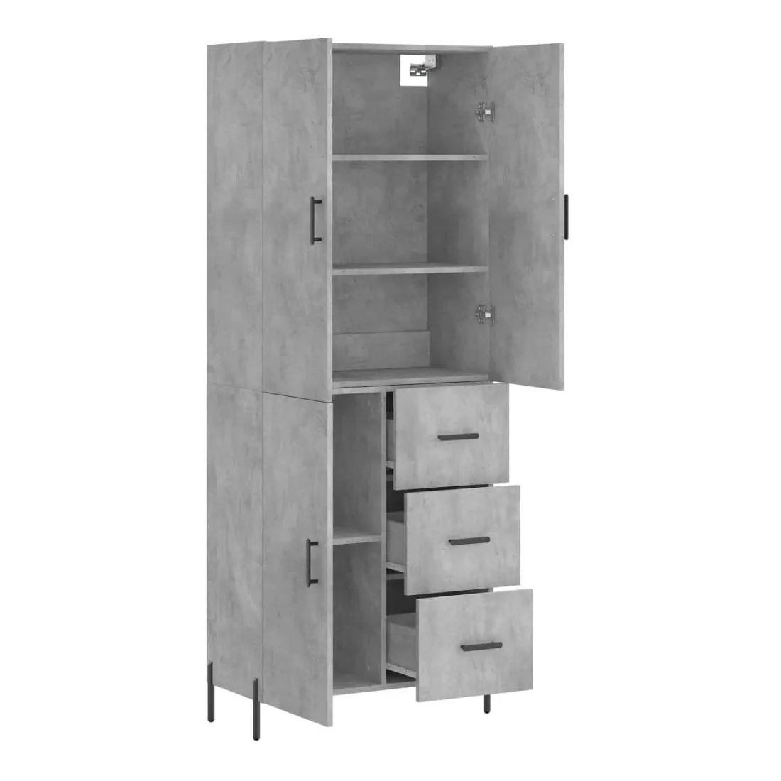 Buffet haut Gris béton 69,5x34x180 cm Bois d'ingénierie