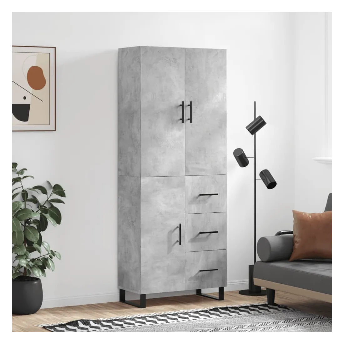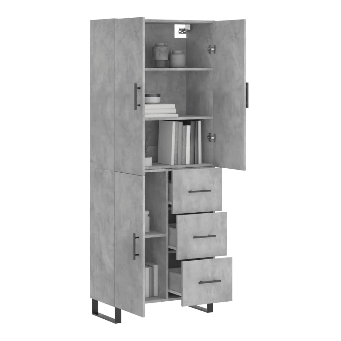 Buffet haut Gris béton 69,5x34x180 cm Bois d'ingénierie