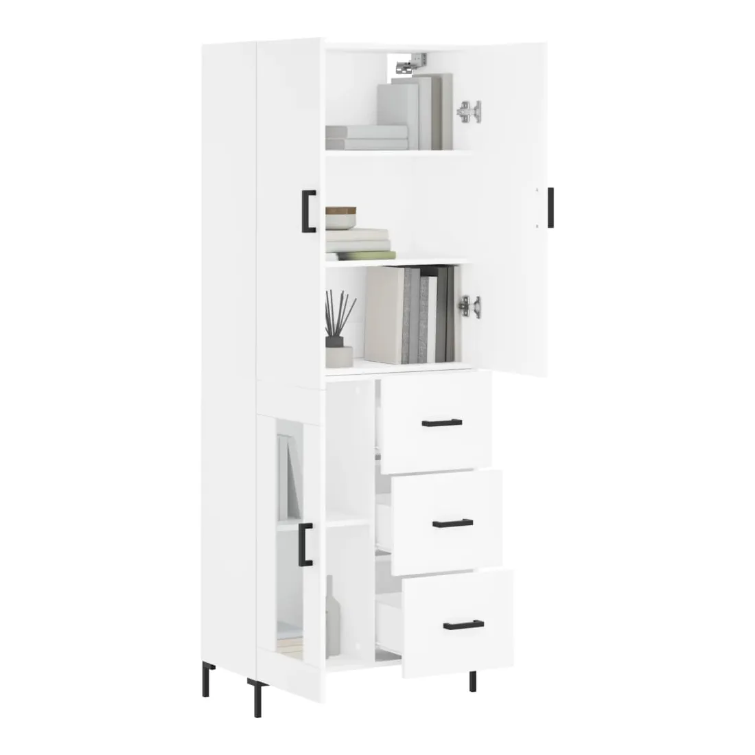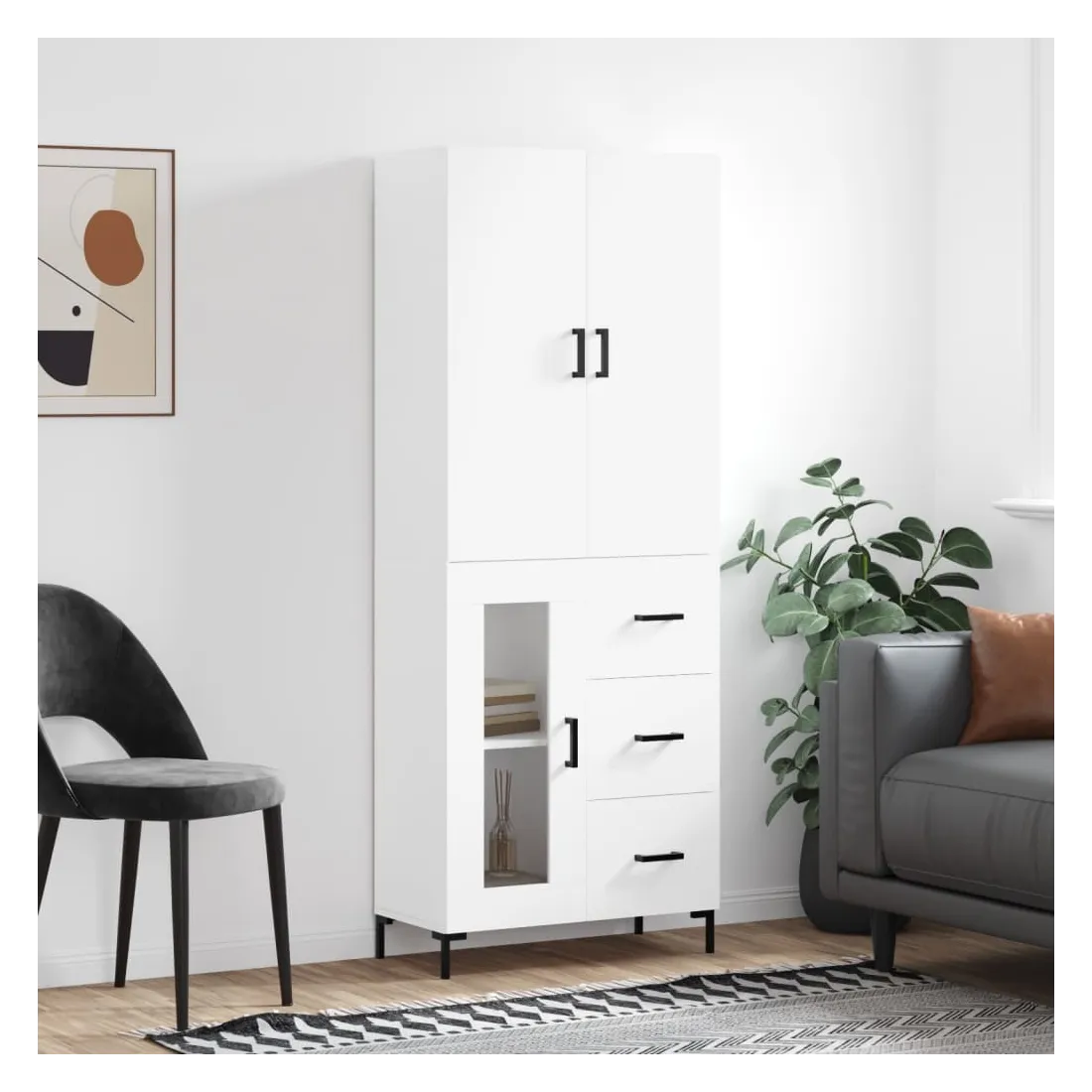 Cherchez-vous un buffet haut de gamme stylé ? Ce buffet haut ajoute un charme élégant à votre intérieur existant ! Matériau durable : le bois d'ingénierie est d'une qualité exceptionnelle avec une surface lisse et présente également résistance, stabilité et résistance à l'humidité.Grand espace de rangement : l'armoire offre un grand espace de rangement pour garder vos différents articles essentiels quotidiens bien organisés et facilement accessibles.Portes pratiques : gardez votre espace sans encombrement en cachant de petits articles essentiels derrière les portes de l'armoire de rangement.Pieds en métal : les pieds en métal ajoutent un style calme à votre intérieur tout en assurant la stabilité. Attention :Pour éviter qu'il ne soit renversé, ce produit doit être utilisé avec le dispositif de fixation au mur fourni. Bon à savoir :Les vis et les chevilles pour l'intérieur du mur ne sont pas incluses. Nous vous conseillons de trouver et d'utiliser des vis et des chevilles adaptées spécifiquement à vos murs. Si vous n'êtes pas sûr, vous pouvez consulter un professionnel. Veuillez lire et suivre chaque étape des instructions.