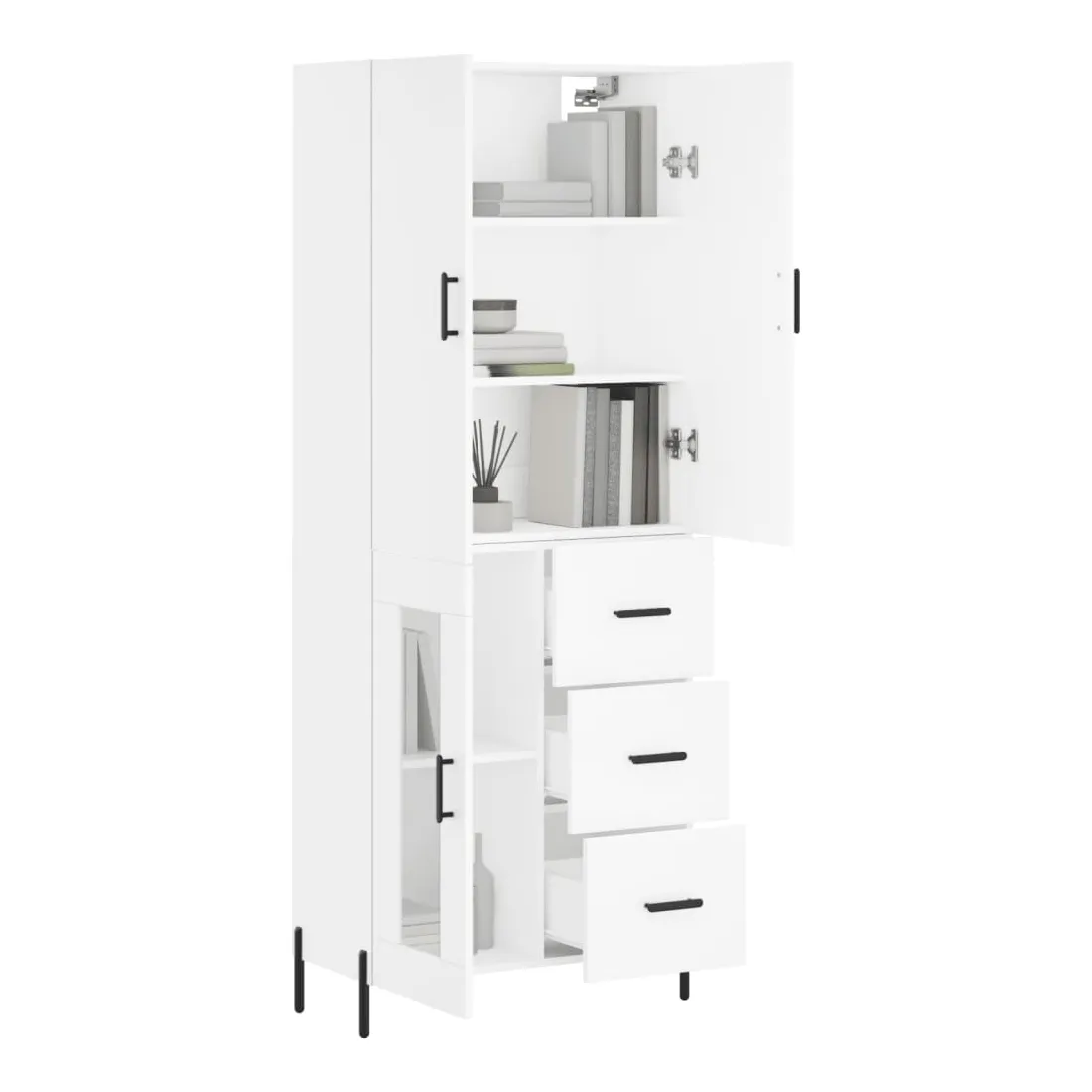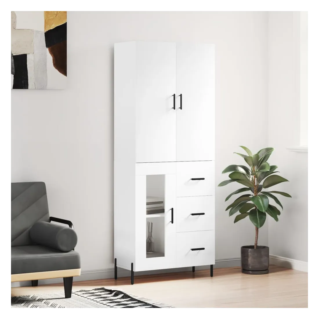 Cherchez-vous un buffet haut de gamme stylé ? Ce buffet haut ajoute un charme élégant à votre intérieur existant ! Matériau durable : le bois d'ingénierie est d'une qualité exceptionnelle avec une surface lisse et présente également résistance, stabilité et résistance à l'humidité.Grand espace de rangement : l'armoire offre un grand espace de rangement pour garder vos différents articles essentiels quotidiens bien organisés et facilement accessibles.Portes pratiques : gardez votre espace sans encombrement en cachant de petits articles essentiels derrière les portes de l'armoire de rangement.Pieds en métal : les pieds en métal ajoutent un style calme à votre intérieur tout en assurant la stabilité. Attention :Pour éviter qu'il ne soit renversé, ce produit doit être utilisé avec le dispositif de fixation au mur fourni. Bon à savoir :Les vis et les chevilles pour l'intérieur du mur ne sont pas incluses. Nous vous conseillons de trouver et d'utiliser des vis et des chevilles adaptées spécifiquement à vos murs. Si vous n'êtes pas sûr, vous pouvez consulter un professionnel. Veuillez lire et suivre chaque étape des instructions.
