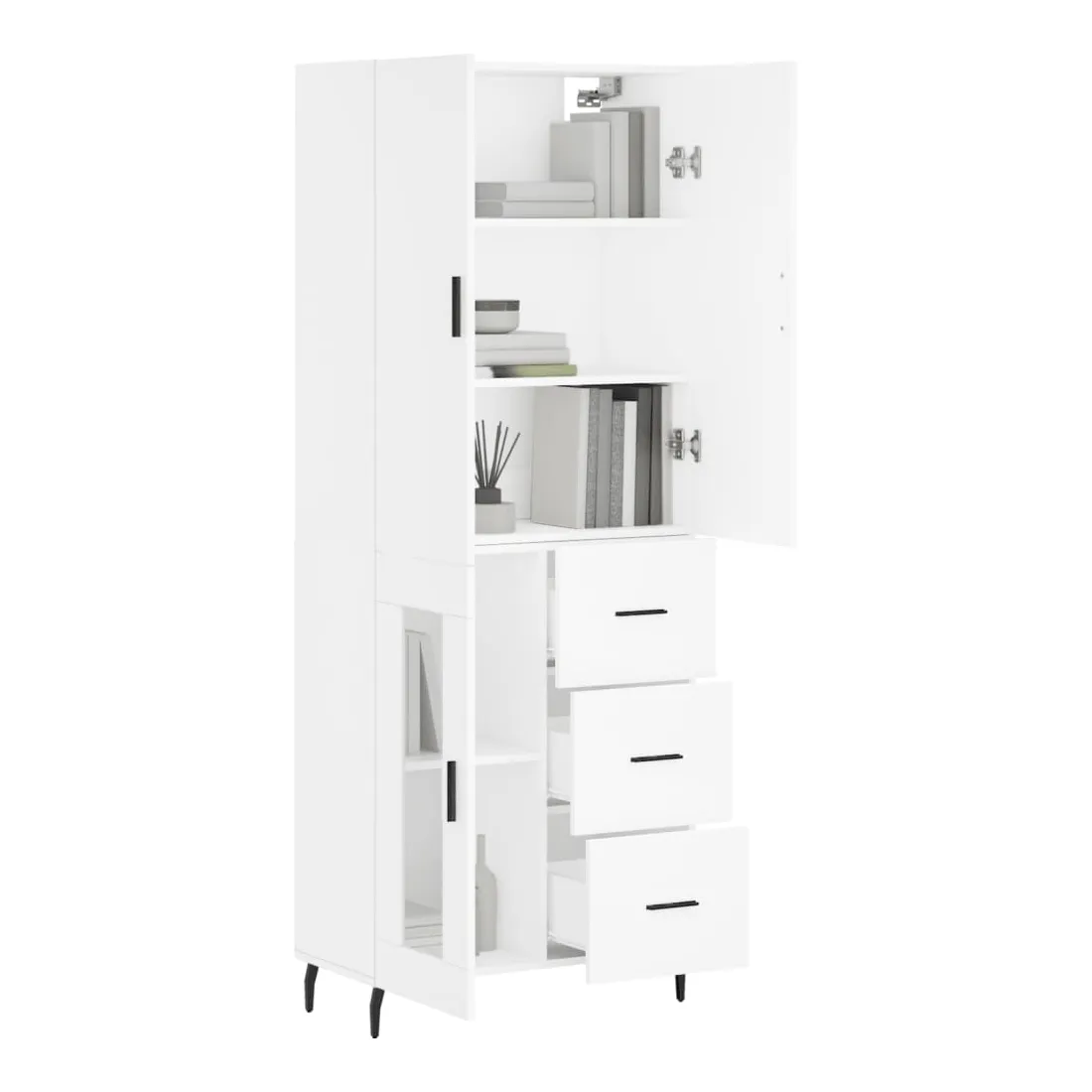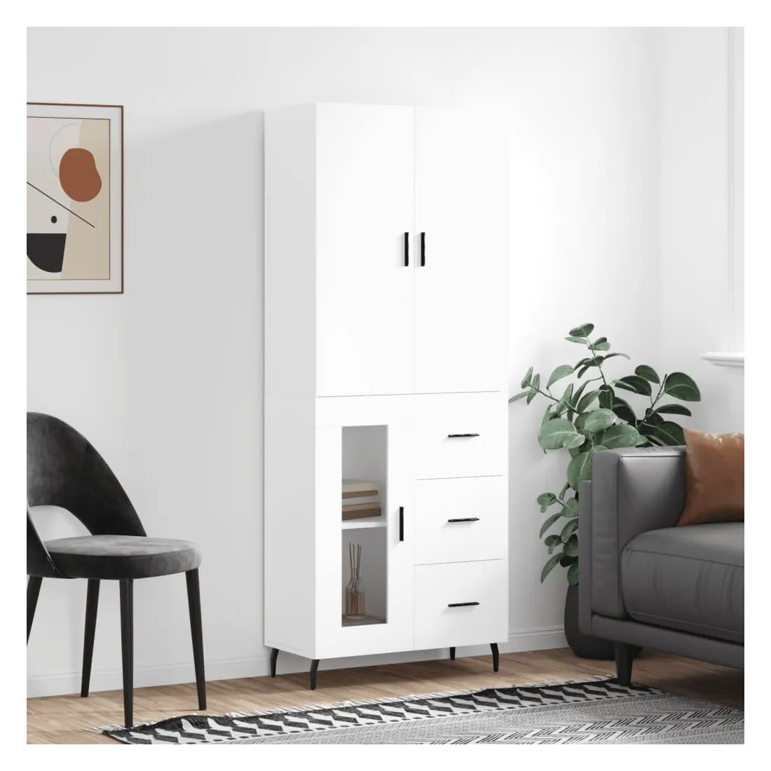 vidaXLCherchez-vous un buffet haut de gamme stylé ? Ce buffet haut ajoute un charme élégant à votre intérieur existant ! Matériau durable : le bois d'ingénierie est d'une qualité exceptionnelle avec une surface lisse et présente également résistance, stabilité et résistance à l'humidité.Grand espace de rangement : l'armoire offre un grand espace de rangement pour garder vos différents articles essentiels quotidiens bien organisés et facilement accessibles.Portes pratiques : gardez votre espace sans encombrement en cachant de petits articles essentiels derrière les portes de l'armoire de rangement.Pieds en métal : les pieds en métal ajoutent un style calme à votre intérieur tout en assurant la stabilité. Attention :Pour éviter qu'il ne soit renversé, ce produit doit être utilisé avec le dispositif de fixation au mur fourni. Bon à savoir :Les vis et les chevilles pour l'intérieur du mur ne sont pas incluses. Nous vous conseillons de trouver et d'utiliser des vis et des chevilles adaptées spécifiquement à vos murs. Si vous n'êtes pas sûr, vous pouvez consulter un professionnel. Veuillez lire et suivre chaque étape des instructions.