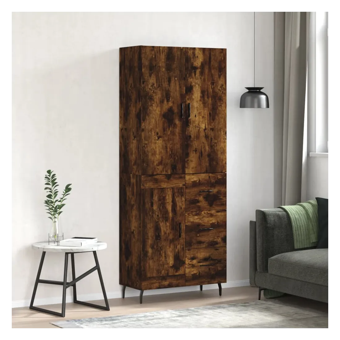 Buffet haut Chêne fumé 69,5x34x180 cm Bois d'ingénierie
