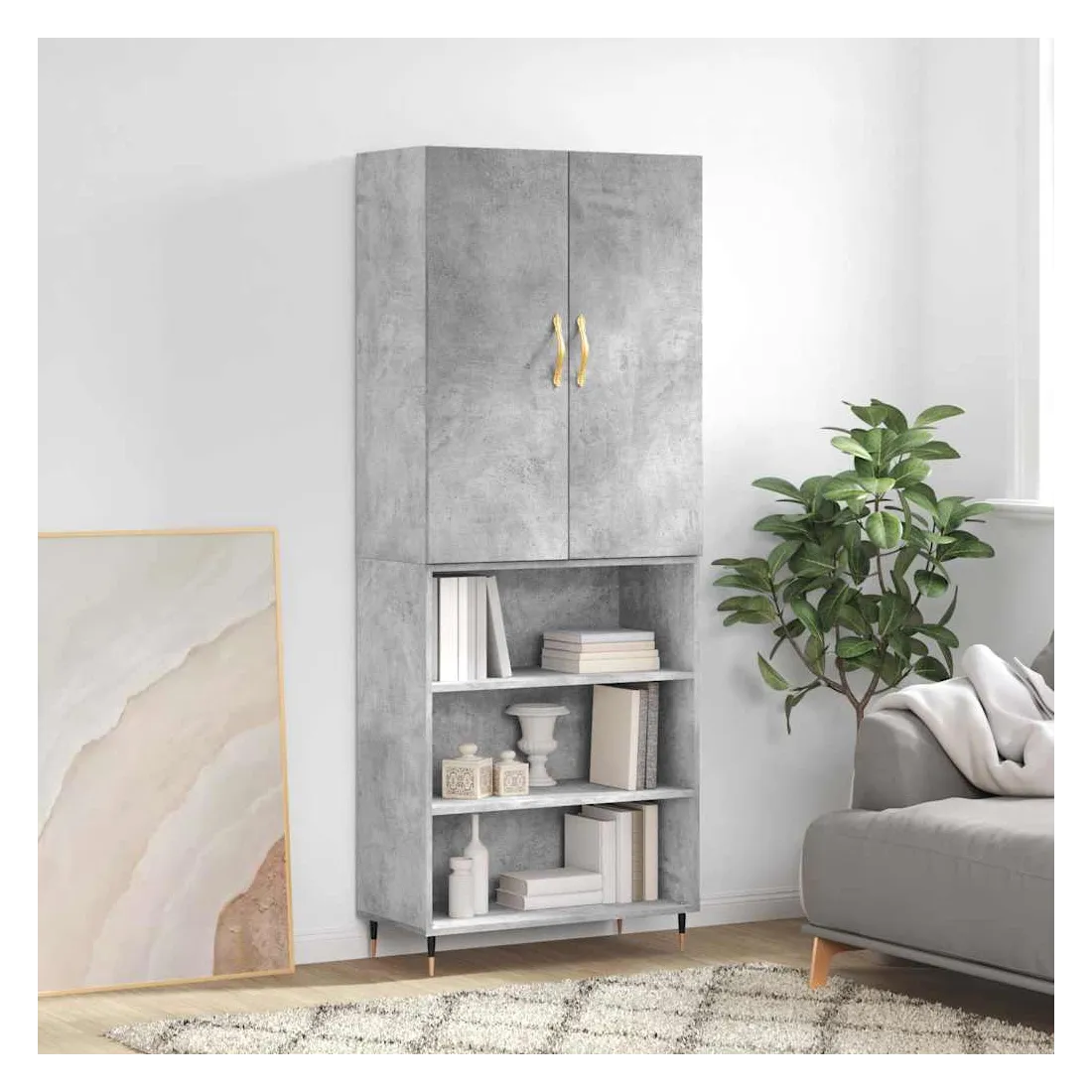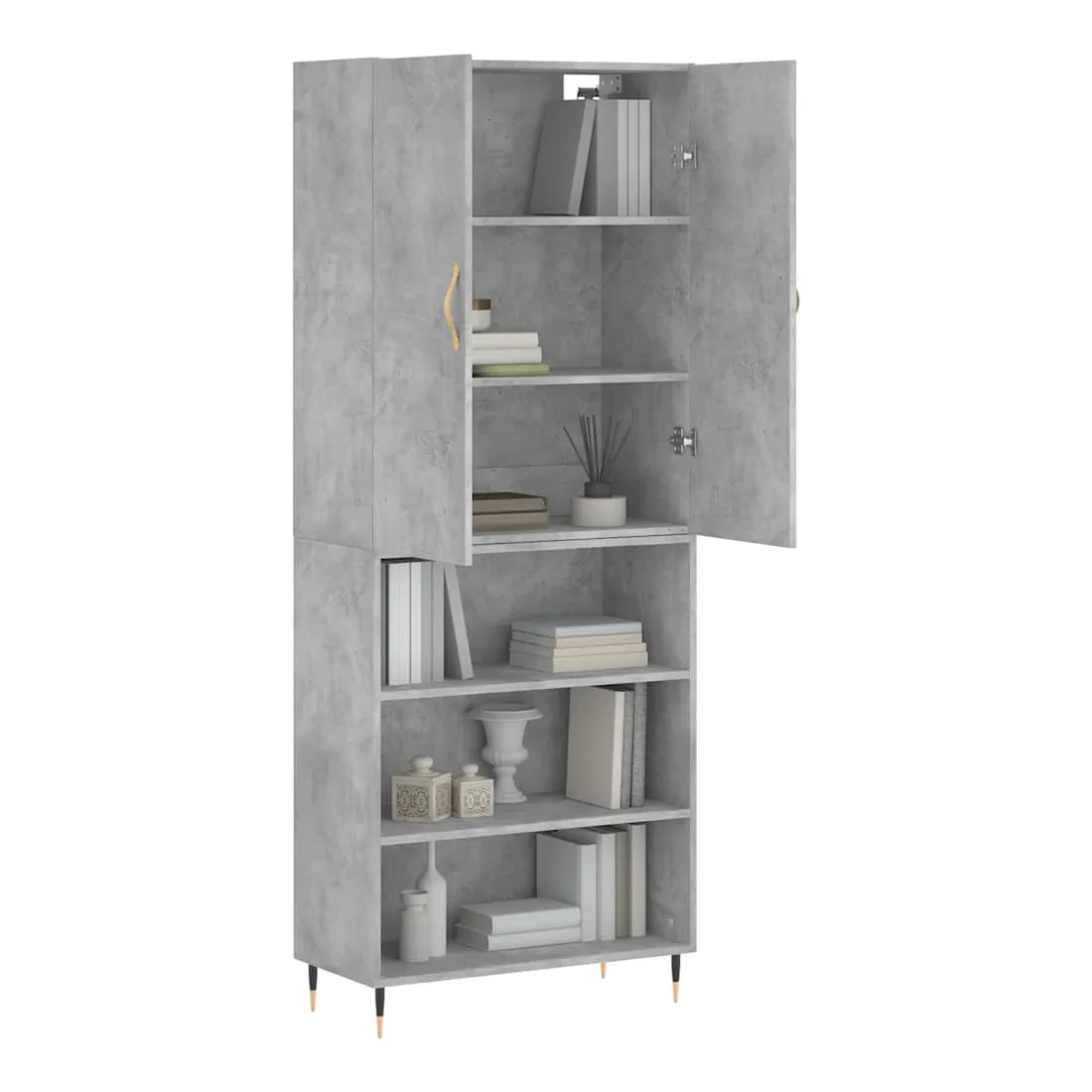 Buffet haut Gris béton 69,5x34x180 cm Bois d'ingénierie