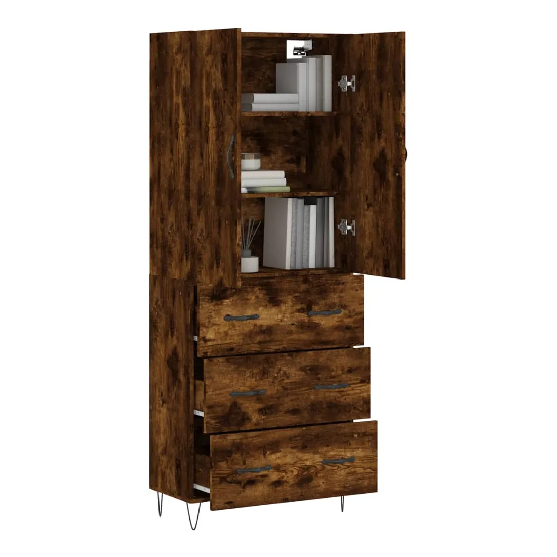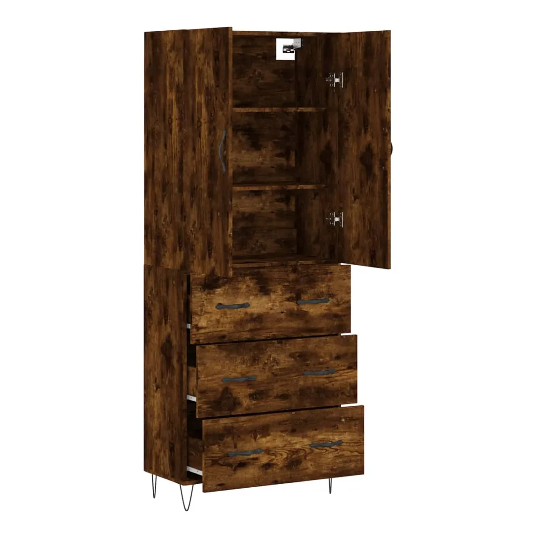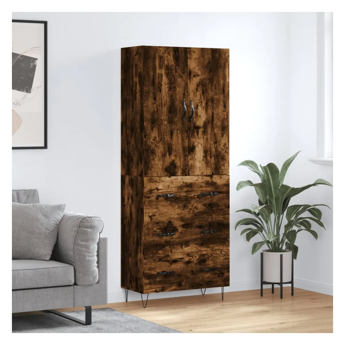 Buffet haut Chêne fumé 69,5x34x180 cm Bois d'ingénierie
