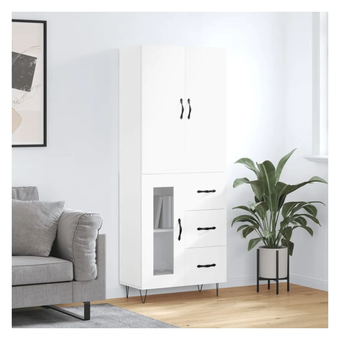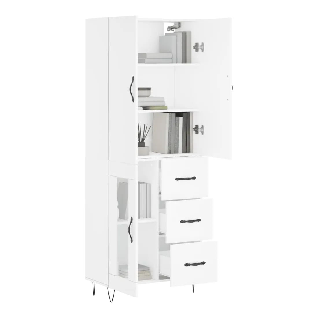 vidaXLCherchez-vous un buffet haut de gamme stylé ? Ce buffet haut ajoute un charme élégant à votre intérieur existant ! Matériau durable : le bois d'ingénierie est d'une qualité exceptionnelle avec une surface lisse et présente également résistance, stabilité et résistance à l'humidité.Grand espace de rangement : l'armoire offre un grand espace de rangement pour garder vos différents articles essentiels quotidiens bien organisés et facilement accessibles.Portes pratiques : gardez votre espace sans encombrement en cachant de petits articles essentiels derrière les portes de l'armoire de rangement.Pieds en métal : les pieds en métal ajoutent un style calme à votre intérieur tout en assurant la stabilité. Attention :Pour éviter qu'il ne soit renversé, ce produit doit être utilisé avec le dispositif de fixation au mur fourni. Bon à savoir :Les vis et les chevilles pour l'intérieur du mur ne sont pas incluses. Nous vous conseillons de trouver et d'utiliser des vis et des chevilles adaptées spécifiquement à vos murs. Si vous n'êtes pas sûr, vous pouvez consulter un professionnel. Veuillez lire et suivre chaque étape des instructions.