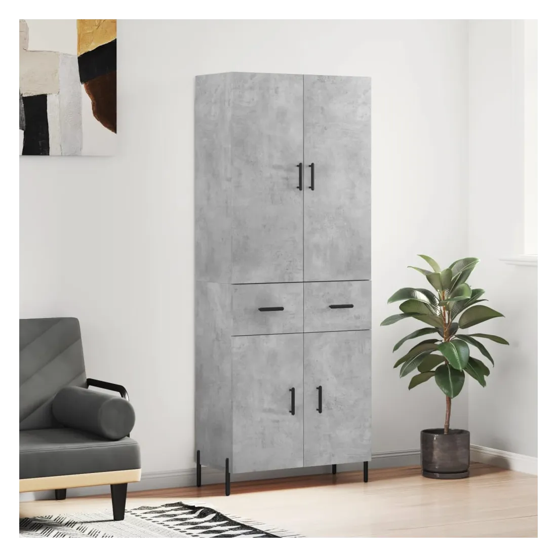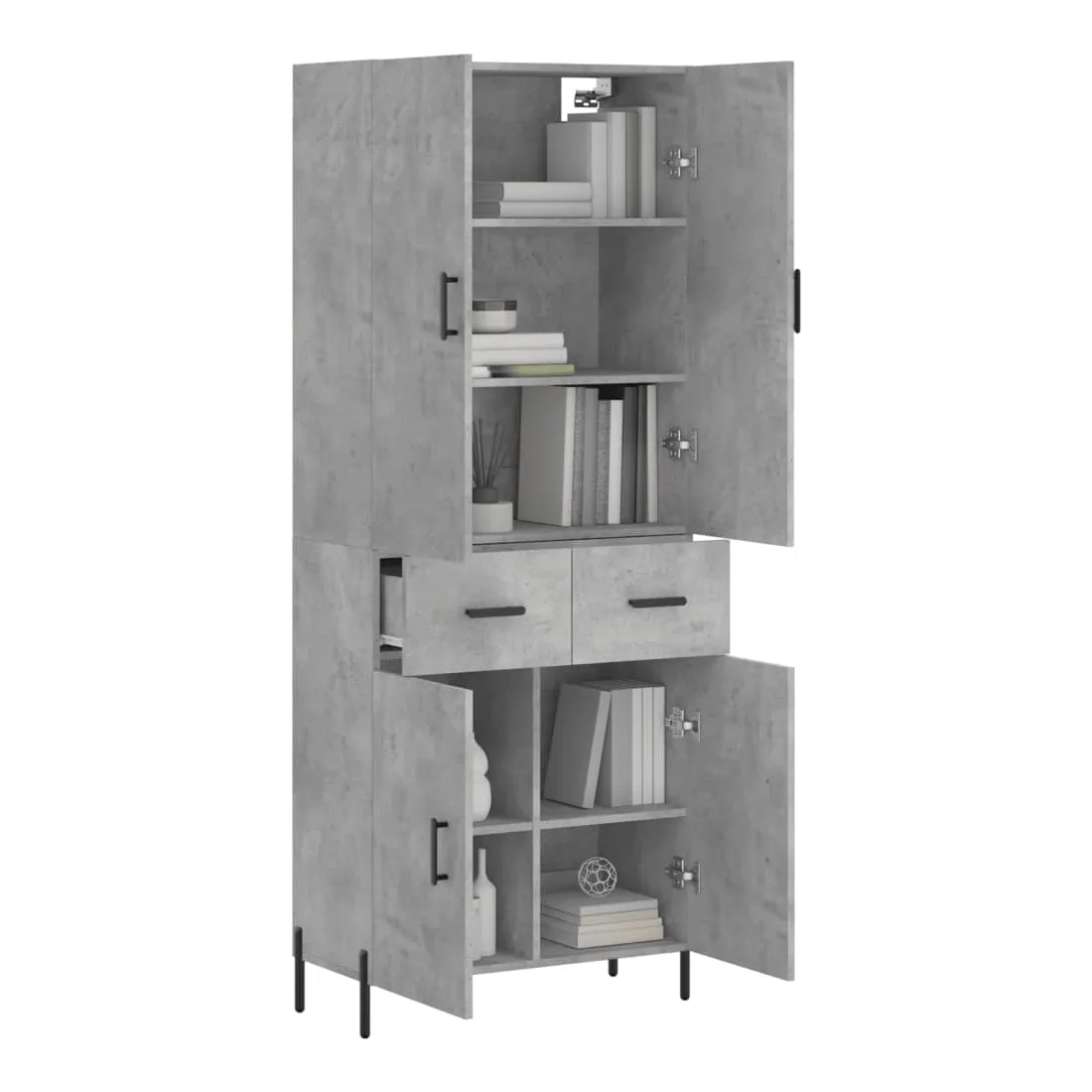 Buffet haut Gris béton 69,5x34x180 cm Bois d'ingénierie