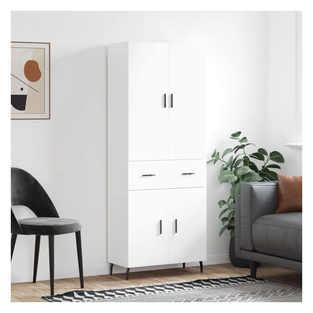 Cherchez-vous un buffet haut de gamme stylé ? Ce buffet haut ajoute un charme élégant à votre intérieur existant ! Matériau durable : le bois d'ingénierie est d'une qualité exceptionnelle avec une surface lisse et présente également résistance, stabilité et résistance à l'humidité.Grand espace de rangement : l'armoire offre un grand espace de rangement pour garder vos différents articles essentiels quotidiens bien organisés et facilement accessibles.Portes pratiques : gardez votre espace sans encombrement en cachant de petits articles essentiels derrière les portes de l'armoire de rangement.Pieds en métal : les pieds en métal ajoutent un style calme à votre intérieur tout en assurant la stabilité. Attention :Pour éviter qu'il ne soit renversé, ce produit doit être utilisé avec le dispositif de fixation au mur fourni. Bon à savoir :Les vis et les chevilles pour l'intérieur du mur ne sont pas incluses. Nous vous conseillons de trouver et d'utiliser des vis et des chevilles adaptées spécifiquement à vos murs. Si vous n'êtes pas sûr, vous pouvez consulter un professionnel. Veuillez lire et suivre chaque étape des instructions.