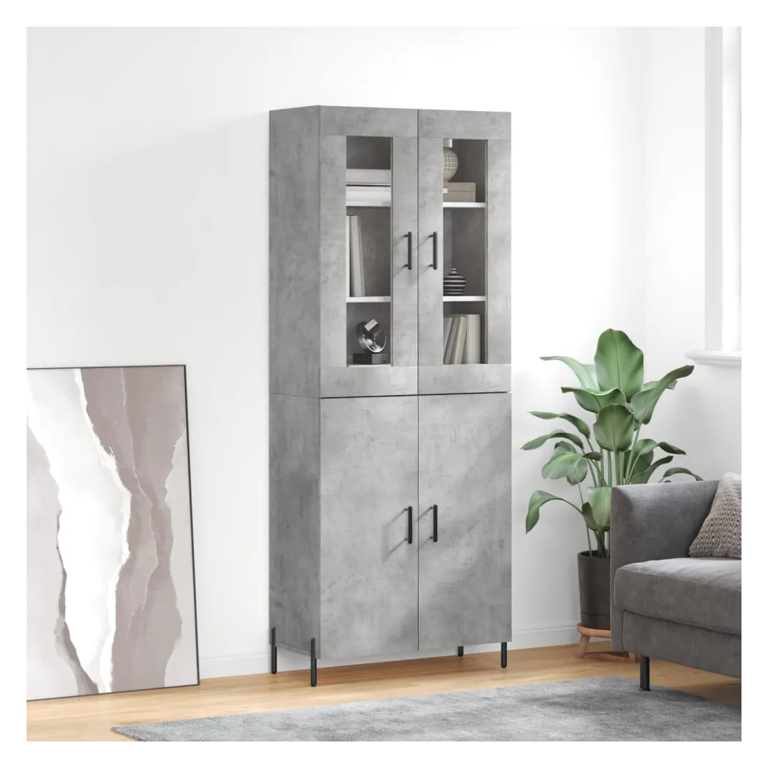 Buffet haut Gris béton 69,5x34x180 cm Bois d'ingénierie